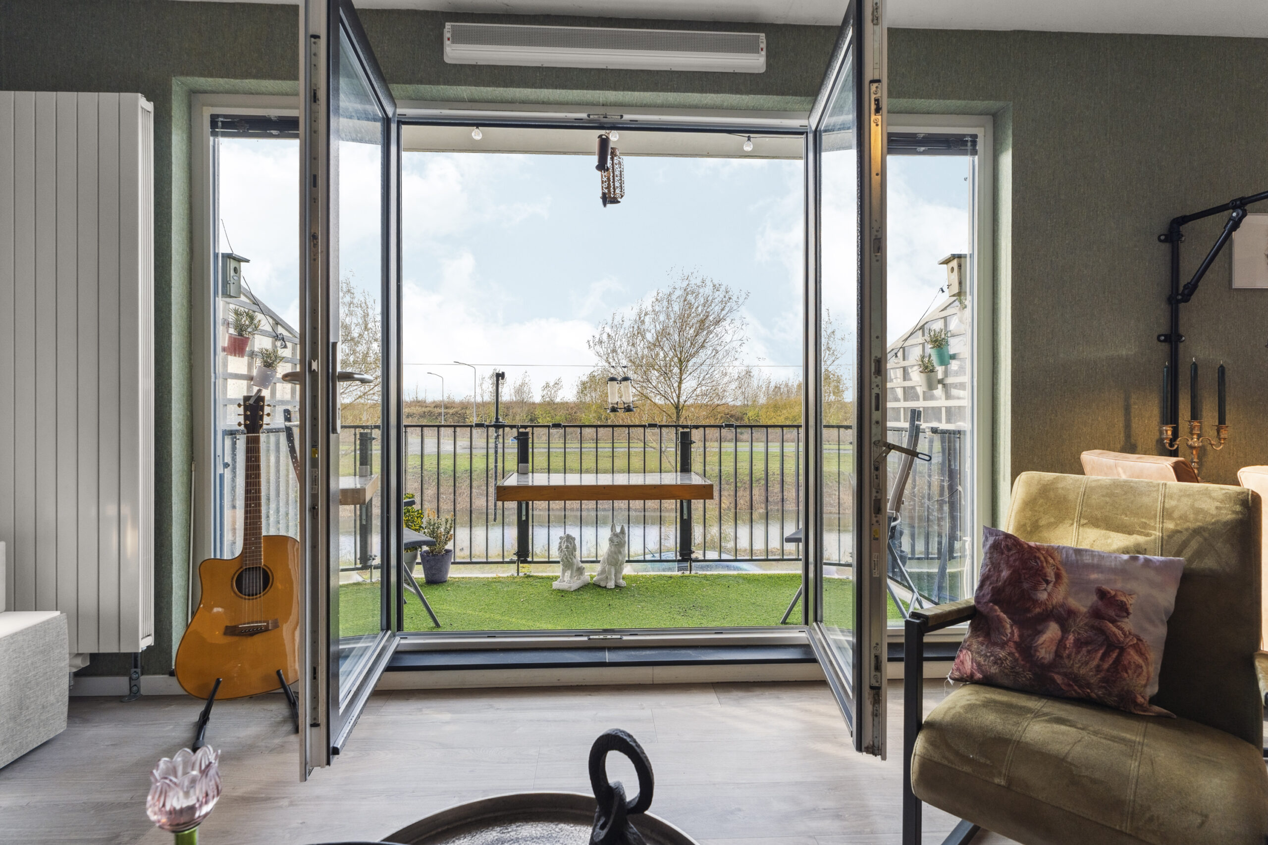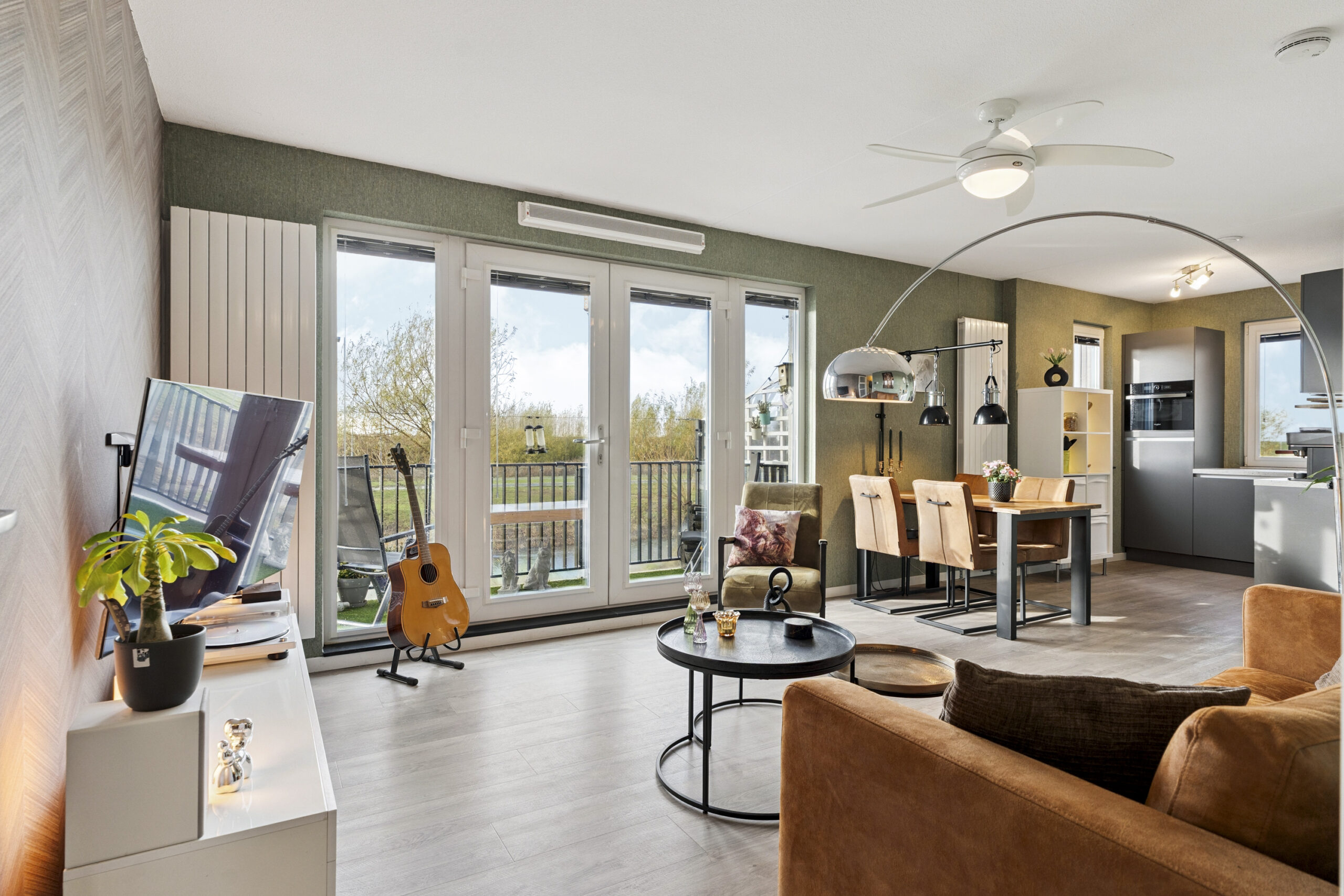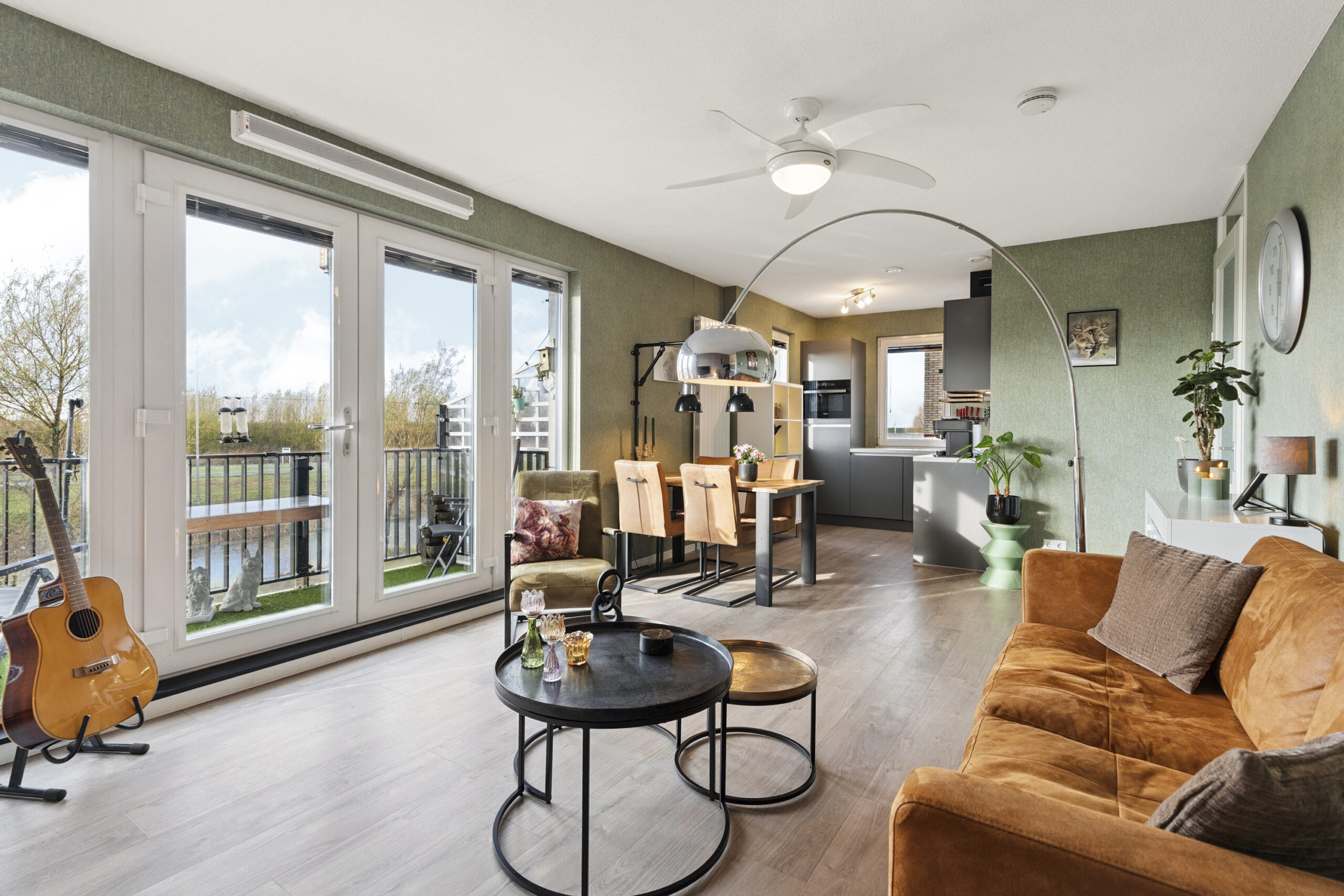 • Zicht op de dijk vanuit woonkeuken en woonkamer
