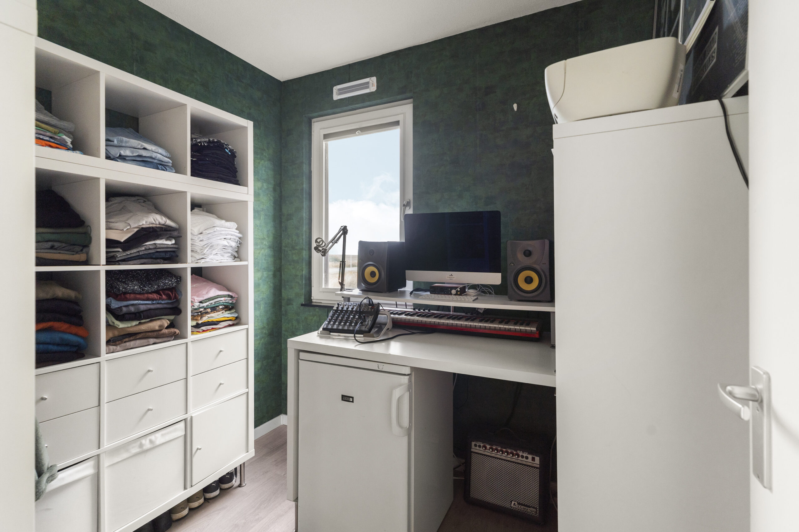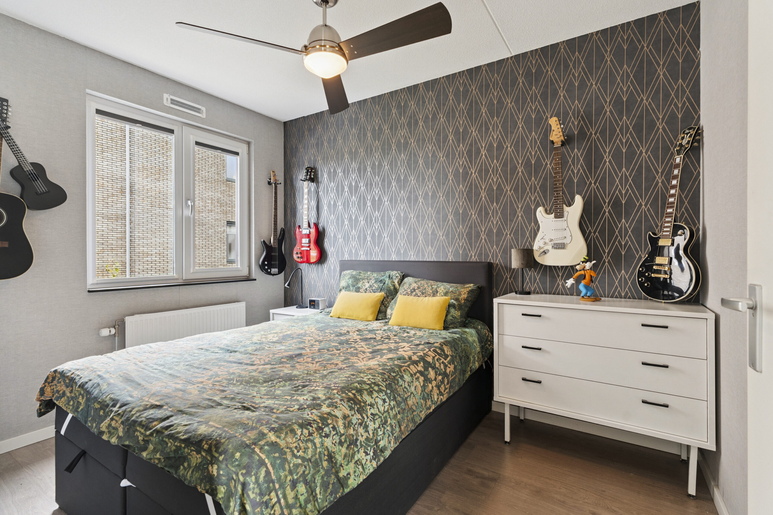 In het appartement bevinden zich twee slaapkamers, beide toegankelijk vanuit de woonkamer. De grootste slaapkamer, met een oppervlakte van circa 9 m², doet dienst als master bedroom. Er is ruimte voor een royaal bed en een kledingkast, waardoor dit een zeer praktische en comfortabele kamer is. De tweede slaapkamer, nu in gebruik als kantoor en kastenkamer, is circa 6 m² en is net als de ouderslaapkamer voorzien van een mooie, doorgelegde laminaatvloer.