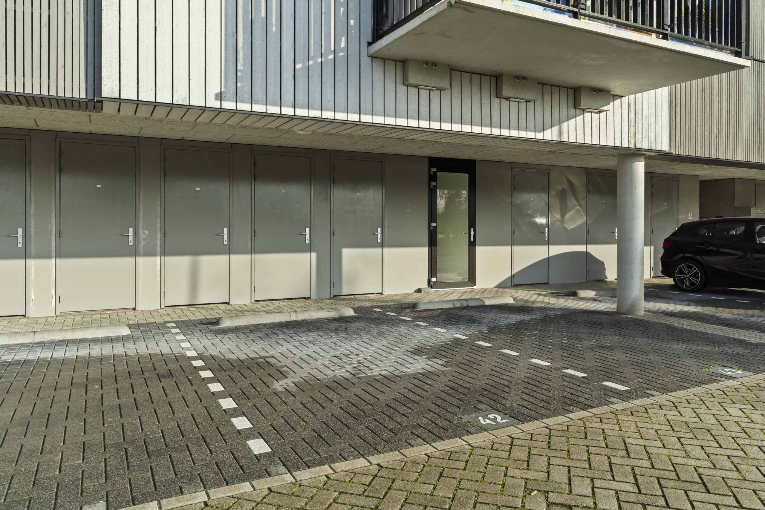 Bij binnenkomst in het complex tref je de verzorgde entree met brievenbussen en het bellenplateau. Op de begane grond beschik je over een eigen berging met elektra, ideaal voor het stallen van fietsen of het opbergen van gereedschap. Direct daarnaast ligt je eigen parkeerplaats, waardoor je altijd verzekerd bent van een vaste plek. Via de centrale hal bereik je de woning eenvoudig met zowel de trap als de lift.