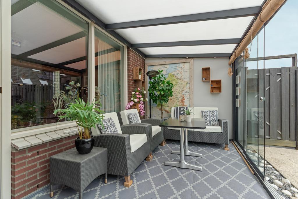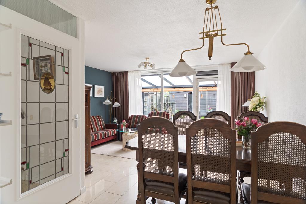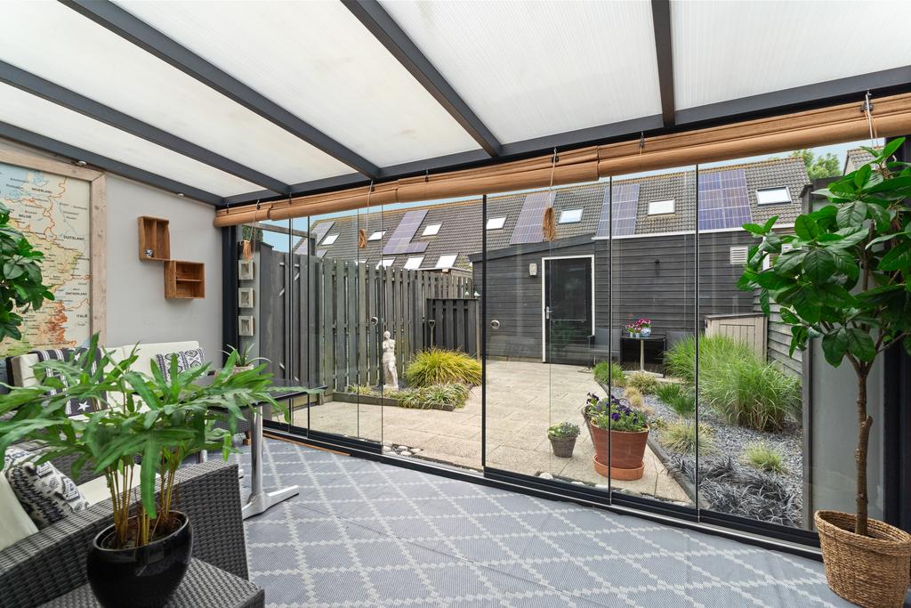 De tuingerichte woonkamer is extra licht door het zijraam en geeft toegang tot de recent gerenoveerde tuin te bereiken via de gezellige serre. Een serre is een welkome aanvulling op jouw woongenot, hier kun je namelijk vanaf vroeg in het voorjaar tot laat in het najaar comfortabel genieten van jouw ‘buiten’. Met als extraatje ruim voldoende zitgelegenheid voor jouw gezin of visite om te ontspannen en te genieten, zowel binnen als buiten.
