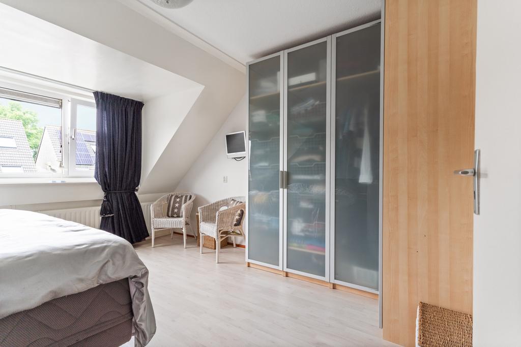 Er zijn twee slaapkamers, beiden ruim van formaat. Waarvan de eerste slaapkamer aan de voorzijde van de woning ligt en zo’n circa 10m² aan comfortabele ruimte biedt. Aan de achterzijde bevindt zich de tweede slaapkamer, die aanzienlijk ruimer is dankzij een riante dakkapel, met een oppervlakte van circa 18 m².