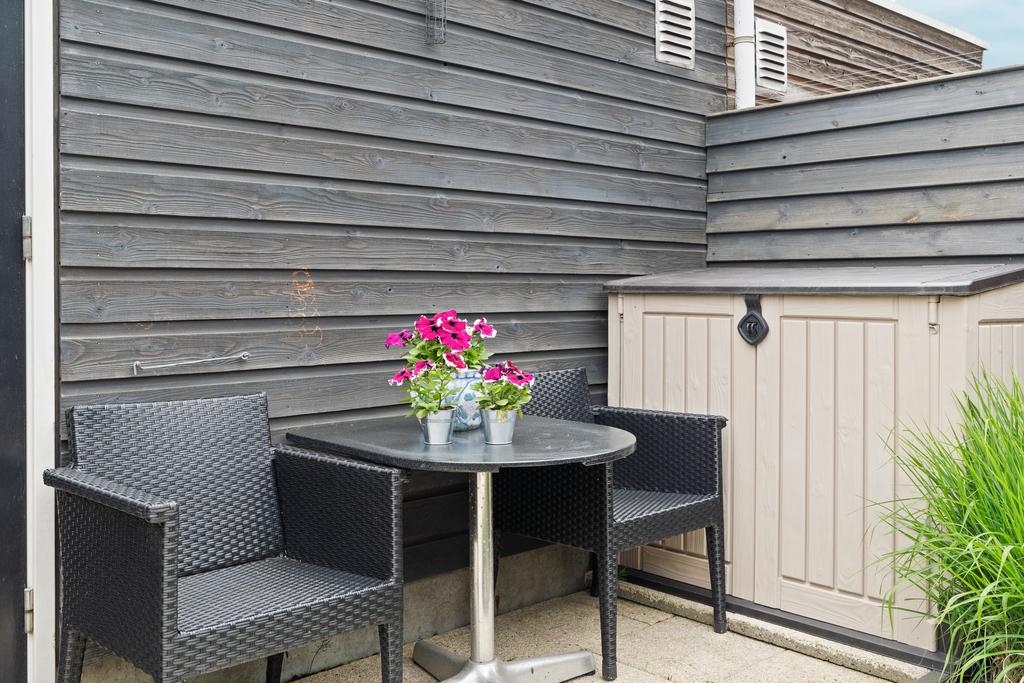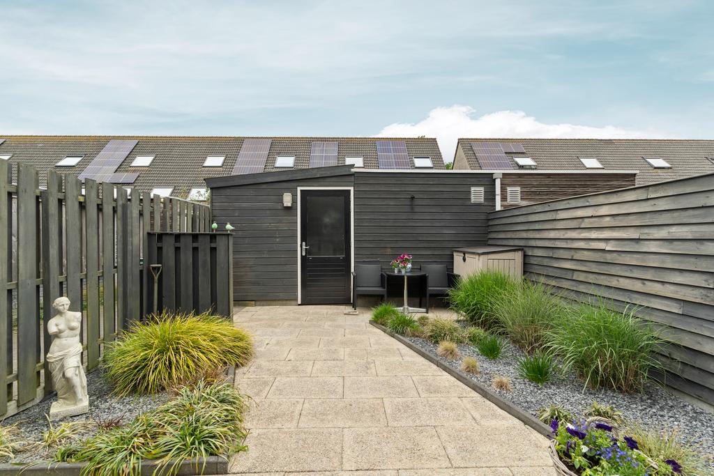 De extra grote berging is een waardevolle toevoeging aan deze buitenruimte. Voor de klusser of hobbyist biedt deze ruimte alle mogelijkheden voor het realiseren van projecten of het opbergen van gereedschap. En laten we de keurig afgewerkte erfafscheiding niet vergeten, compleet met een zijpoort voor extra toegankelijkheid en privacy.