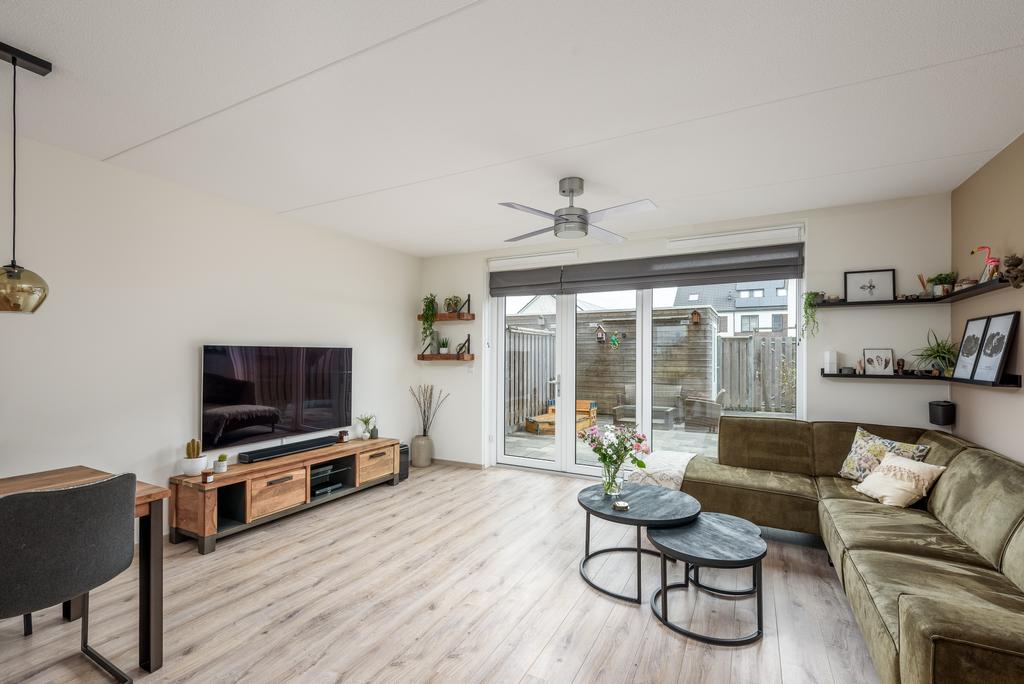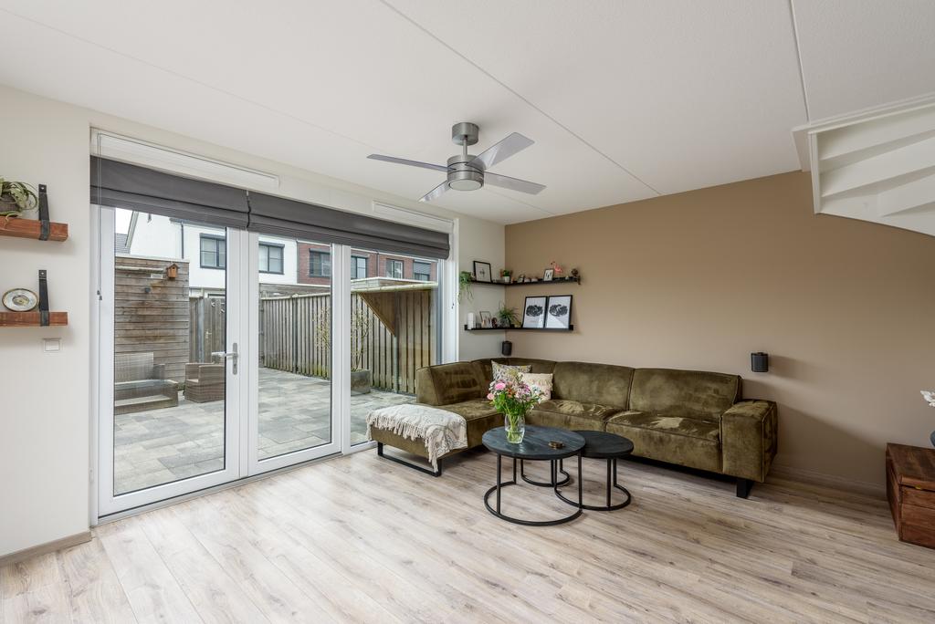 De entree geeft toegang tot hal met meterkast, het toilet en de trapopgang naar de verdiepingen. De woonkamer met open woonkeuken is licht en ruim dankzij de grote raampartijen en openslaande deuren. Met de praktische opbergruimte onder de trap, is er slim gebruik gemaakt van de beschikbare ruimte in huis.