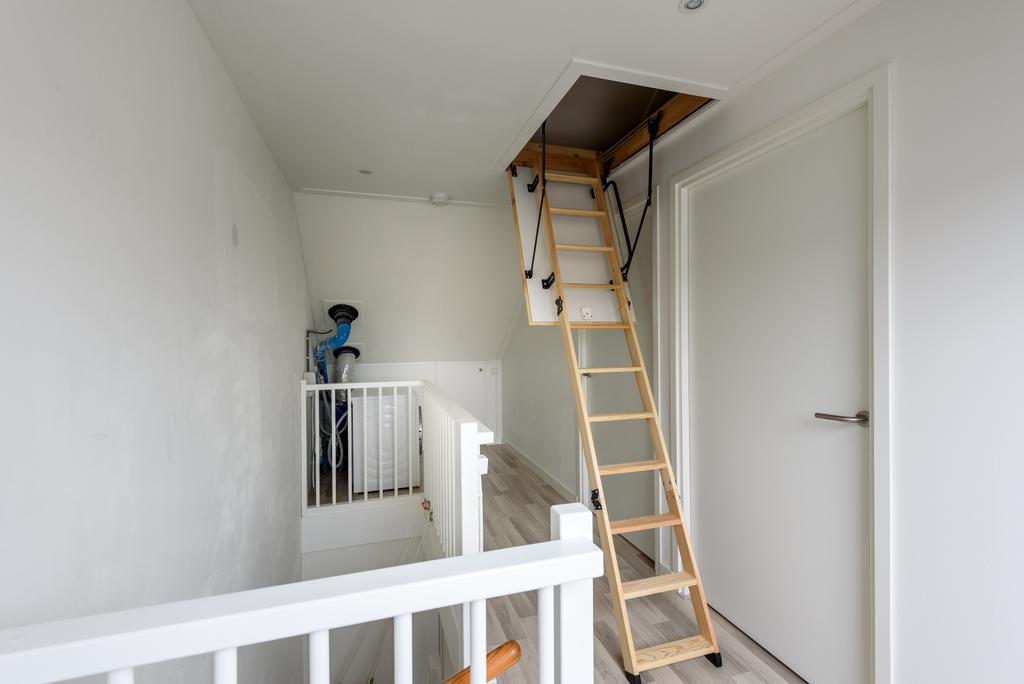 Op de zolderverdieping tref je de voorzolder aan en twee slaapkamers. De voorzolder is bijzonder ruim (circa 10m²), ideaal als werk/speelplek of extra opbergruimte. Hier bevindt zich ook de vlizotrap naar de vliering, waar nog meer bergruimte te vinden is. Verder zijn hier de aansluitingen voor de wasmachine en droger te vinden. Leuk detail is dat alle bergschotten zijn voorzien van een ondervloer en verlichting!