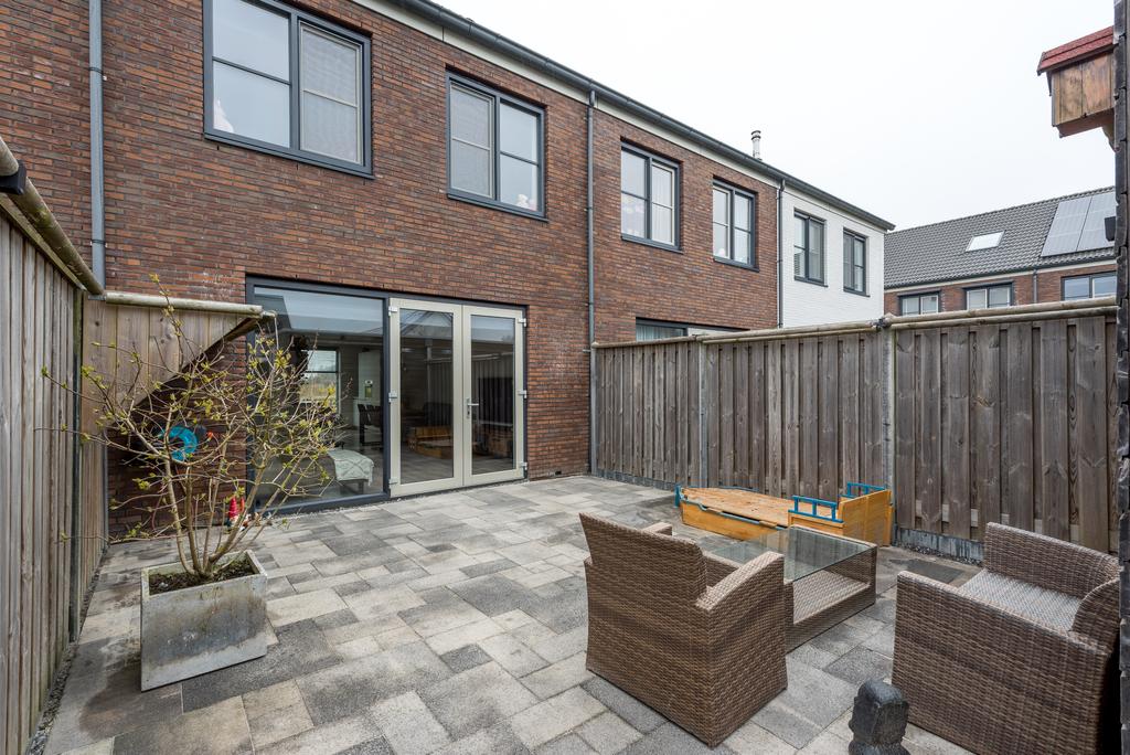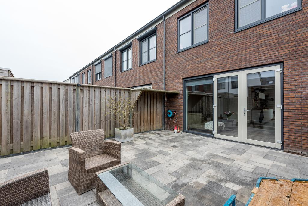 Deze woning beschikt over een ruime achtertuin die weinig onderhoud vereist, gelegen op het Noordoosten. De tuin is keurig bestraat, waardoor je niet veel tijd hoeft te besteden aan het onderhoud ervan. Met een diepte van ongeveer 8 meter is er altijd wel een plekje in de zon te vinden. Ook is er een handige externe houten schuur met elektra aanwezig, evenals een achterom voor extra gemak.