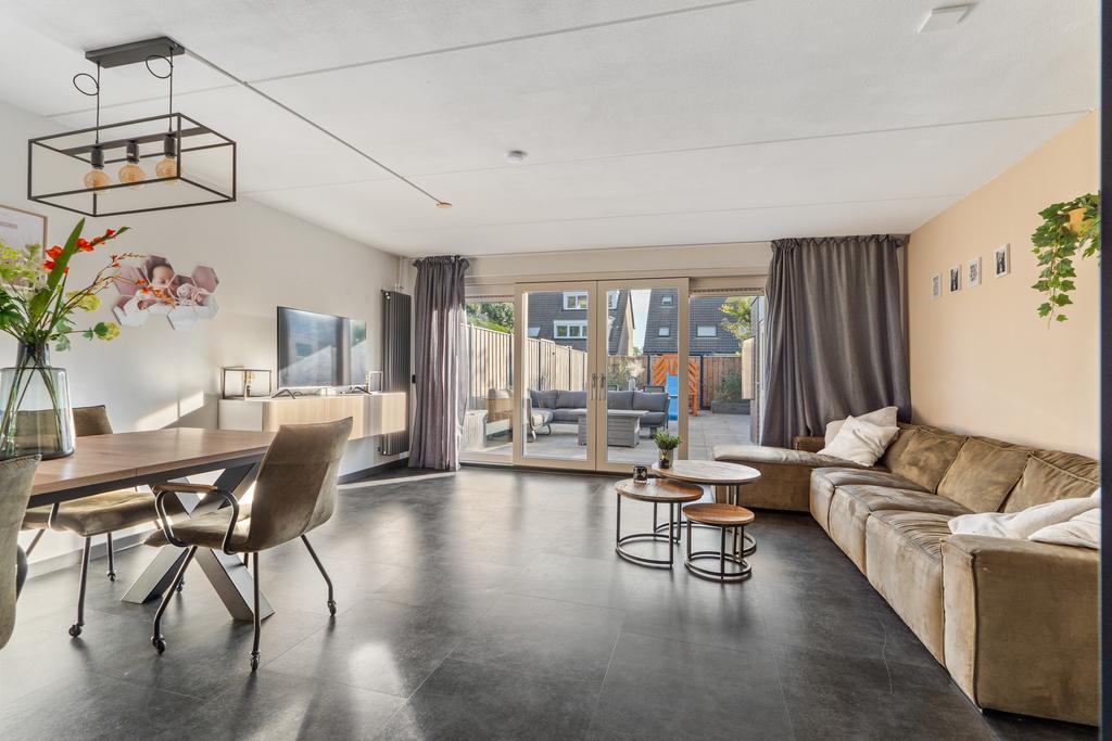 Bij aankomst valt direct de onderhoudsarme voortuin op, die toegang biedt tot deze moderne en uitstekend onderhouden eindwoning. Je stapt binnen in een ruime hal, waar je de meterkast, het moderne toilet en de trap naar de bovenverdiepingen aantreft. Vanuit de hal stap je door de prachtige stalen deur naar de riante, tuingerichte woonkamer van maar liefst 29m². Deze lichte en strak afgewerkte ruimte is een heerlijke plek om te ontspannen, met een prachtige 4-delige schuifpui die toegang geeft tot de grote, zonnige achtertuin. De gehele woning is voorzien van onderhoudsarme kunststof kozijnen met HR ++ beglazing, waardoor het huis niet alleen energiezuinig is, maar ook makkelijk te onderhouden.