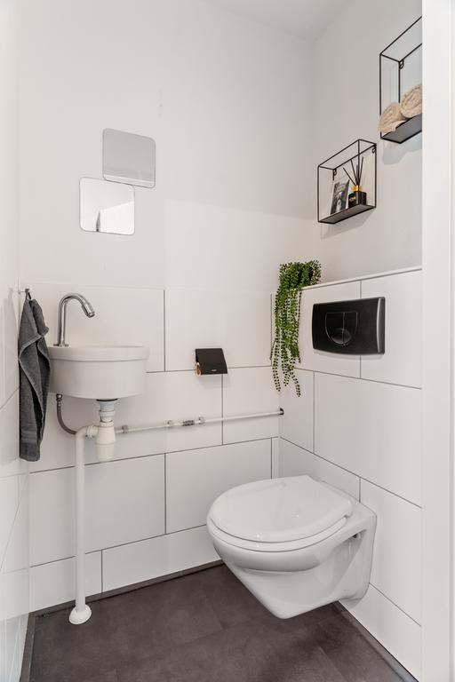 De badkamer van deze woning is werkelijk prachtig. De gehele ruimte is smaakvol betegeld met een elegante marmerlook, gecombineerd met een prachtige natuurtint op de vloer. Dit geeft de badkamer een luxe en rustgevende uitstraling. De inrichting is perfect doordacht en omvat een stijlvol wastafelmeubel, een tweede toilet, en een ruime inloopdouche. Praktische nisjes bieden extra opbergruimte, waardoor de badkamer niet alleen fraai, maar ook functioneel is.