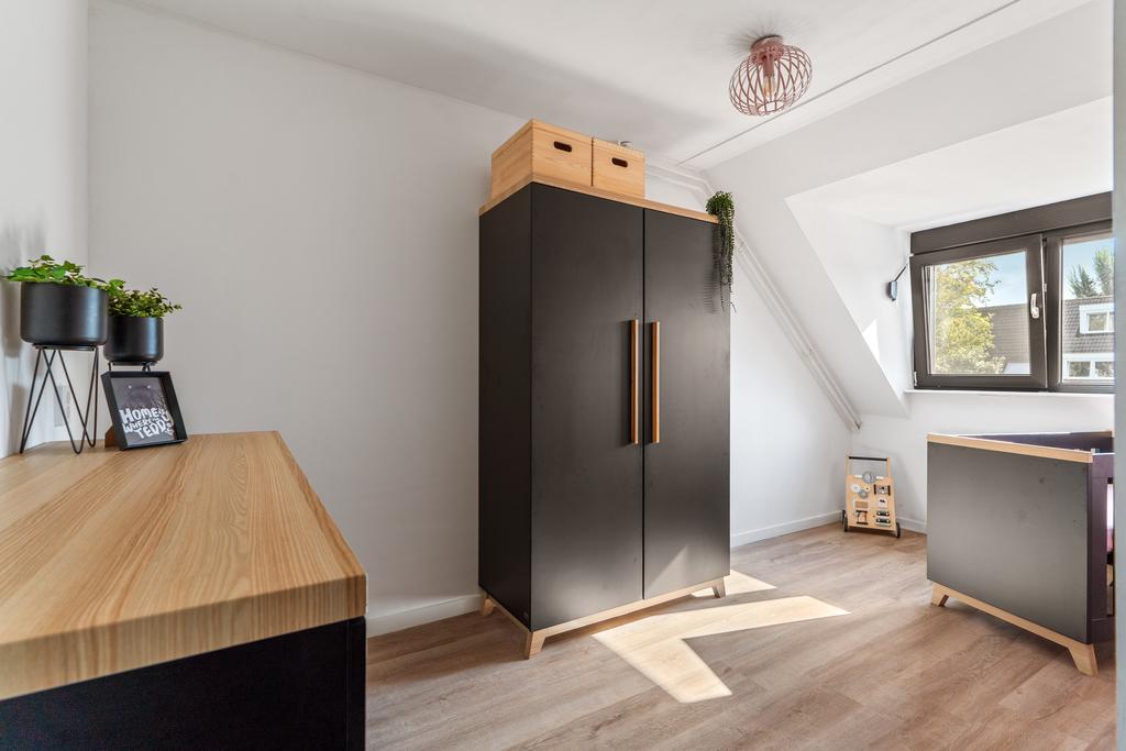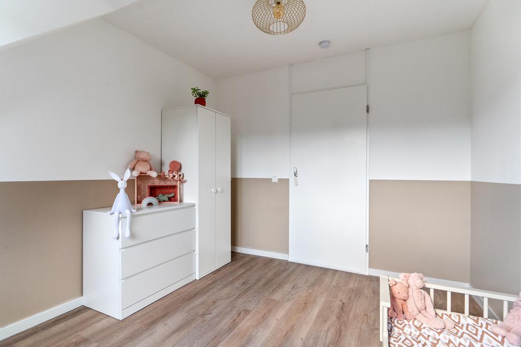 De gehele verdieping is netjes afgewerkt met strakke muren en een prachtige houtlook pvc-vloer, wat bijdraagt aan een moderne en warme uitstraling.