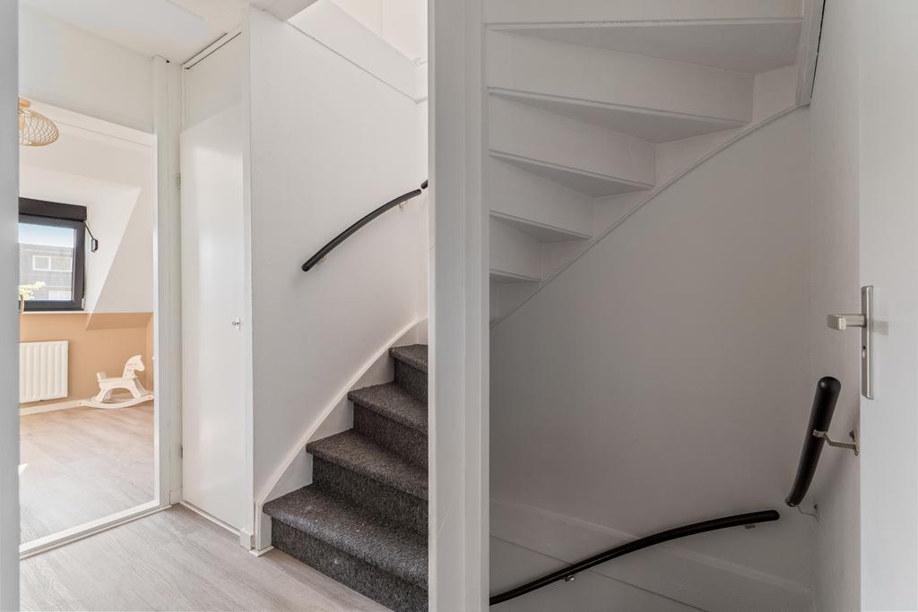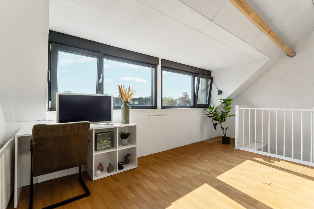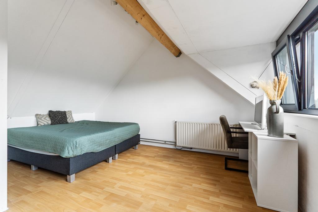 Via een vaste trap bereik je de tweede etage, die uitkomt op een open zolderruimte van maar liefst circa 24m2. Hier vind je de aansluitingen voor de wasmachine en droger, evenals de CV-installatie. Deze verdieping biedt ook de mogelijkheid om een vierde ruime slaapkamer te creëren. Dankzij de geplaatste dakkapel is deze zolder omgetoverd tot een volwaardige, lichte etage met talloze mogelijkheden. Of je nu extra woonruimte nodig hebt of een multifunctionele ruimte wilt inrichten, deze verdieping biedt de perfecte basis.
