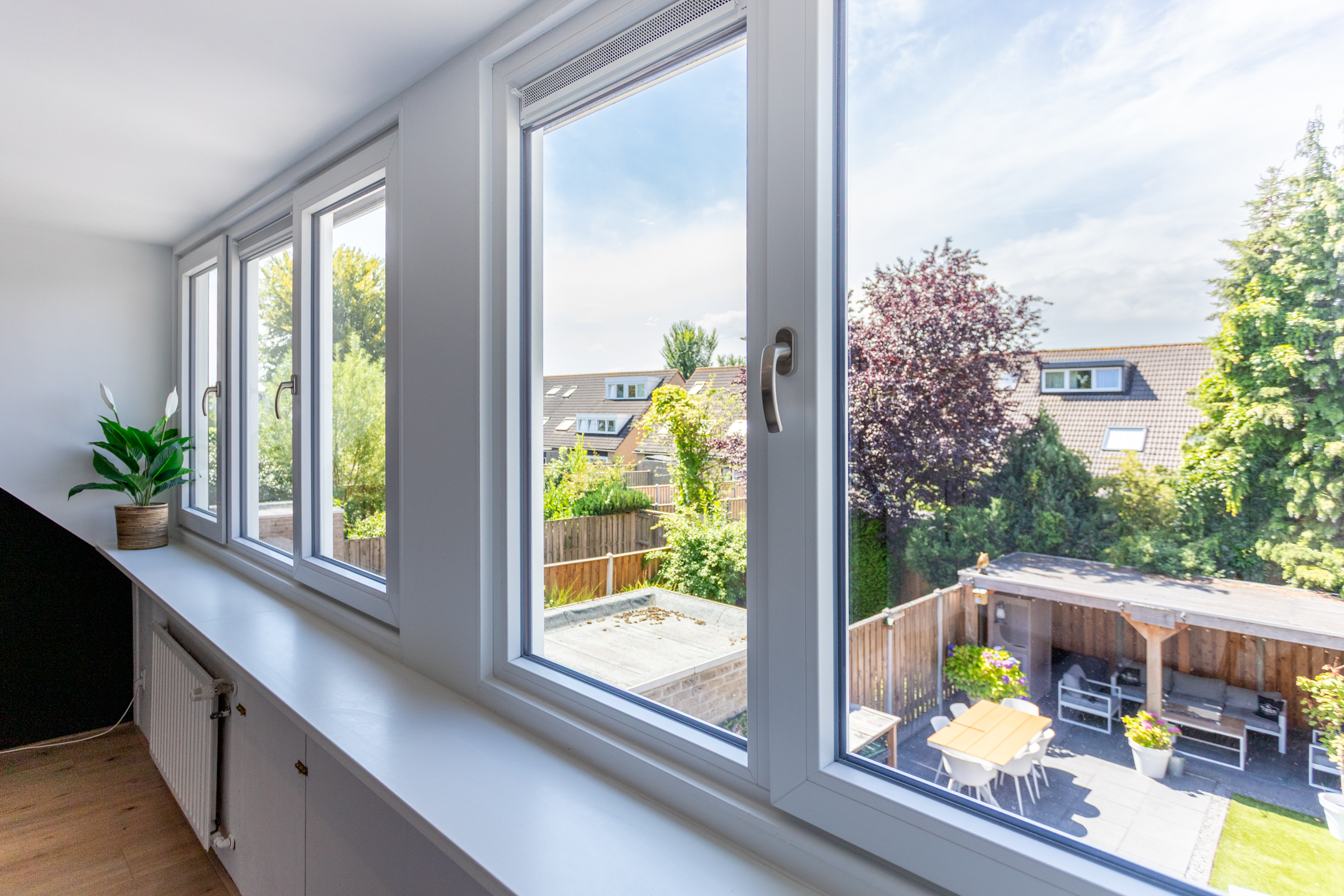 • Gehele woning voorzien van kunststof kozijnen met HR ++ beglazing