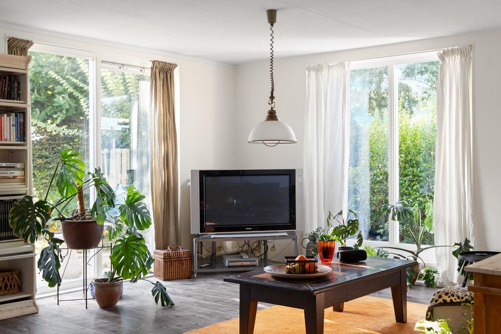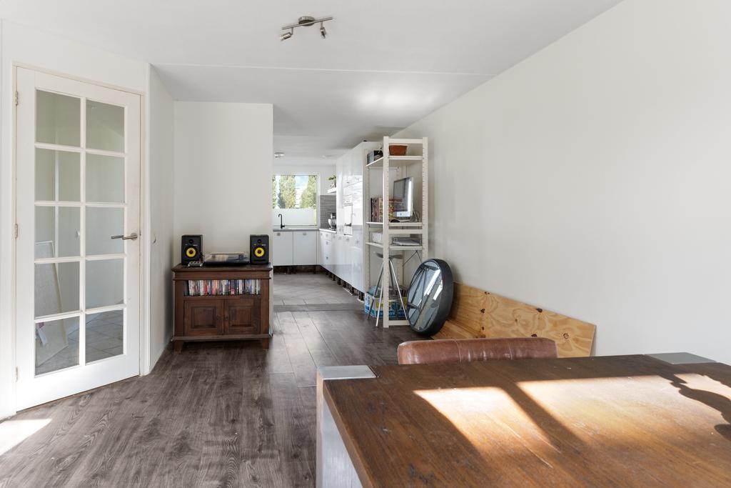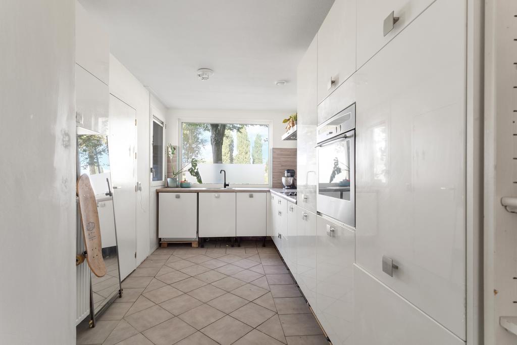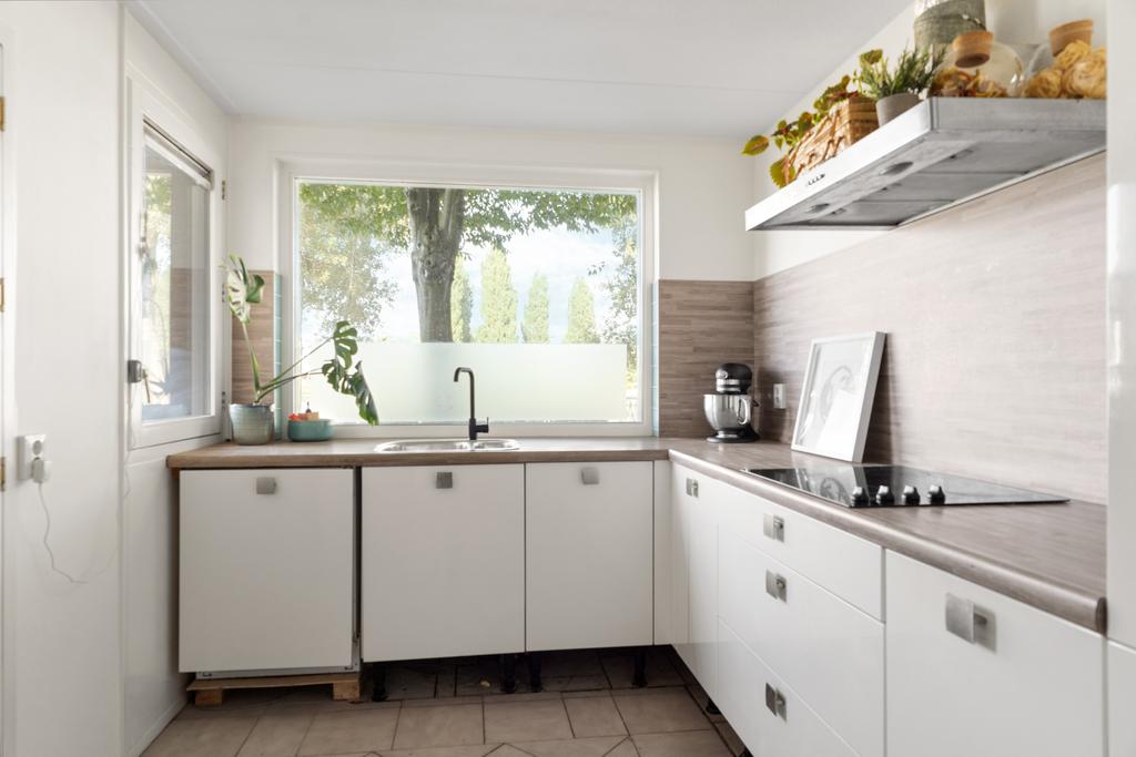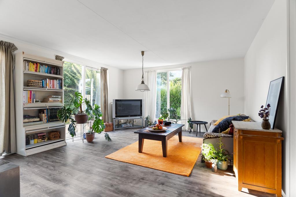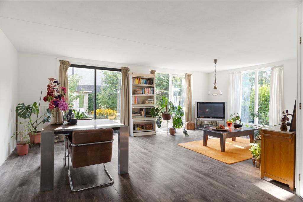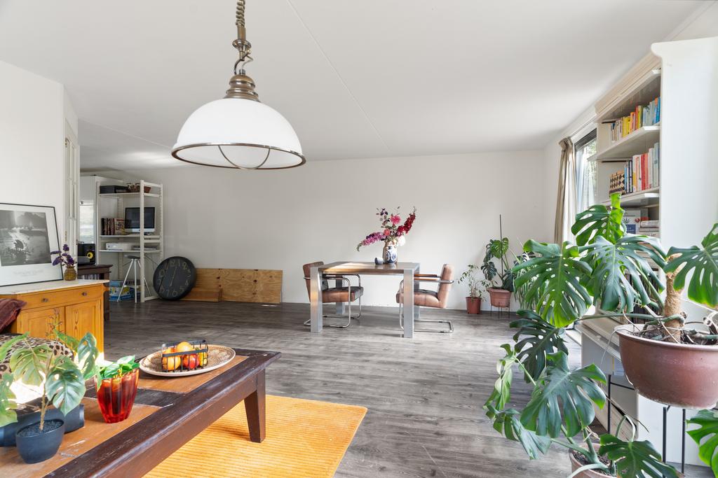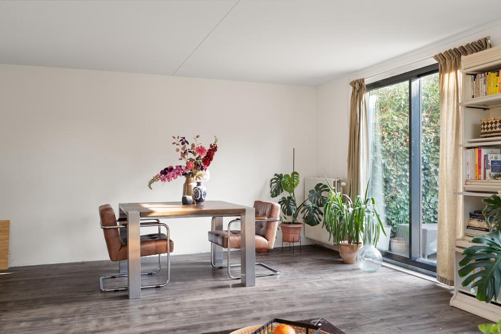 Vanuit de hal bereik je links de keuken en loop je rechtdoor de lichte, ruim opgezette woonkamer in. Deze woonkamer heeft grote raampartijen tot plafond, die zorgen voor een mooie verbinding met de tuin. Via de schuifpui is er direct toegang tot de heerlijke achtertuin, gelegen op het zuidwesten. Er is voldoende ruimte voor een gezellige eethoek, terwijl de keuken aan de voorzijde in een L-vorm is opgesteld en een prachtig uitzicht biedt over de vaart.