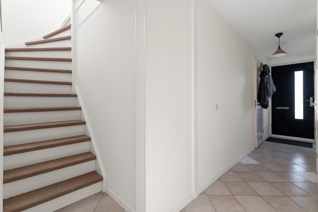 Via de voortuin, met ruimte voor het parkeren van twee auto’s, betreed je deze woning. Je komt binnen in de hal, die is voorzien van een meterkast, een toilet, toegang tot de slaapkamer/praktijkruimte/ thuiskantoor op de begane grond en de trapopgang naar de bovenverdiepingen.