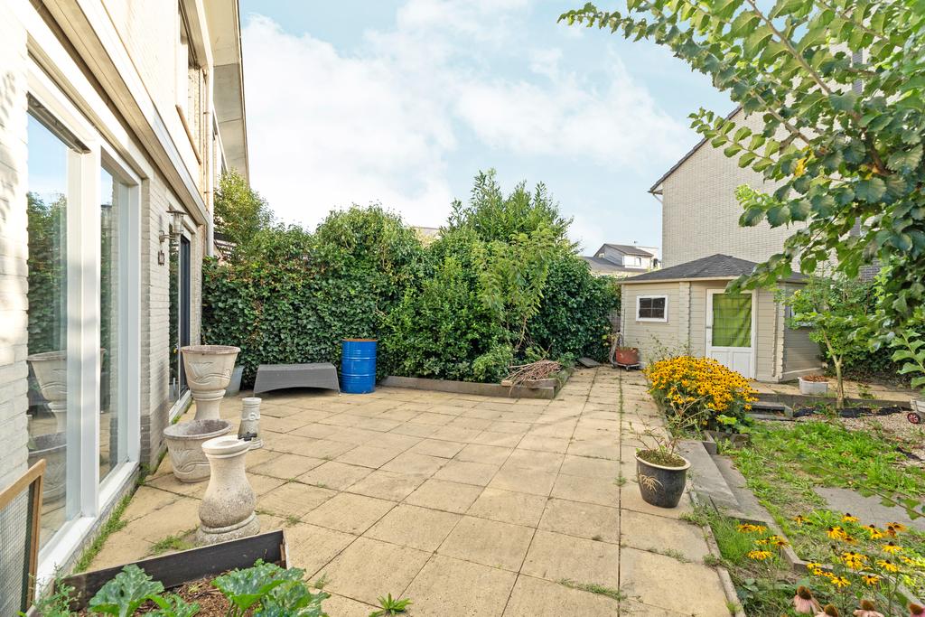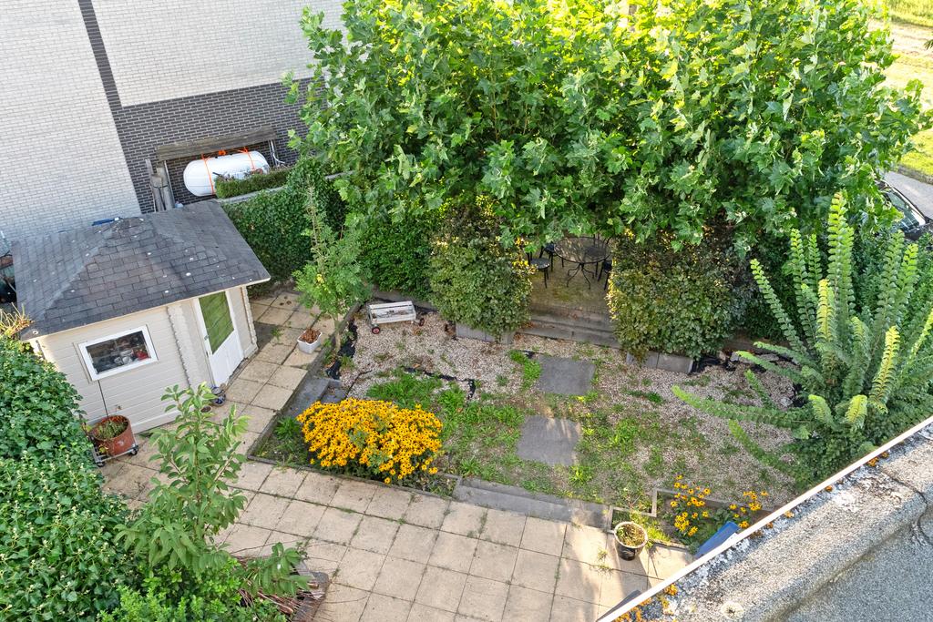 Stap vanuit de woonkamer via de schuifdeuren direct de prachtige, zonnige tuin in! De achtertuin van de woning is een ruime en veelzijdige buitenruimte van circa 12 meter diep, gelegen op het zuidwesten. Dankzij de ideale hoekligging kun je hier de hele dag van de zon genieten en biedt de tuin volop mogelijkheden voor gezellige zithoeken, tuinieren of buiten dineren. Met extra privacy en rust, en een poort aan de zijkant voor gemakkelijke toegang, is het de perfecte plek om te ontspannen. Bovendien is er een praktische berging voor het opbergen van tuinspullen, kinderspeelgoed of fietsen.