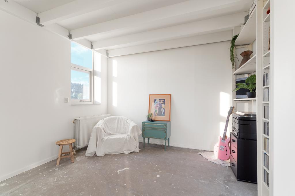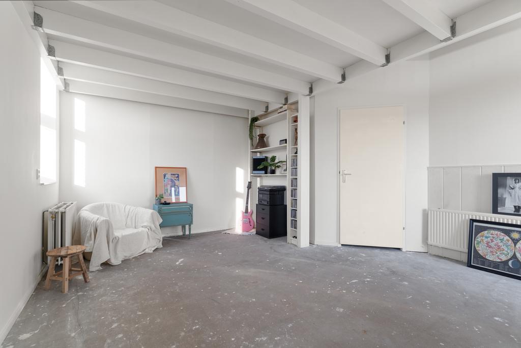 Via de vaste trap bereik je de ruimte op de tweede verdieping, een veelzijdige open ruimte van maar liefst 23m² die volop mogelijkheden biedt. Aangrenzend een bijzonder ruime kledingkamer (ca. 10 m²), een extra keuken én badkamer die na wat opknapwerk het mogelijk maken de woning dubbel te bewonen. Een speelse trap leidt naar een sfeervolle entresol met een stahoogte van ca. 2m op het hoogste punt. Ideaal als knus slaapvertrek. De bonus op deze verdieping is het dakterras, hier kun je genieten van een schitterend uitzicht en ontspannen in de buitenlucht. Het is de enige woning in de directe omgeving met dakterras waardoor je veel privacy geniet op dit heerlijke plekje. Laat je creativiteit de vrije loop en ontdek hoe je deze etage naar jouw wensen kunt indelen!