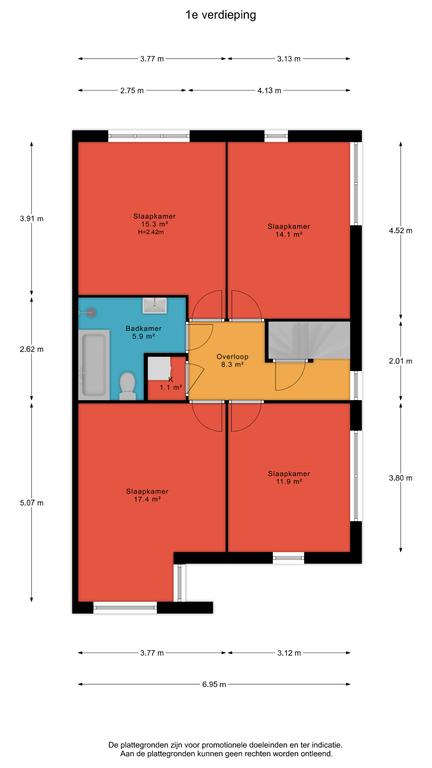 Deze informatie is met zorg samengesteld, maar er wordt geen aansprakelijkheid aanvaard voor eventuele onvolledigheden, onjuistheden of andere tekortkomingen, noch voor de gevolgen daarvan. Wij benadrukken dat de koper een wettelijke onderzoeksplicht heeft. Alle opgegeven maten zijn conform NEN 2580 gemeten en zijn indicatief.