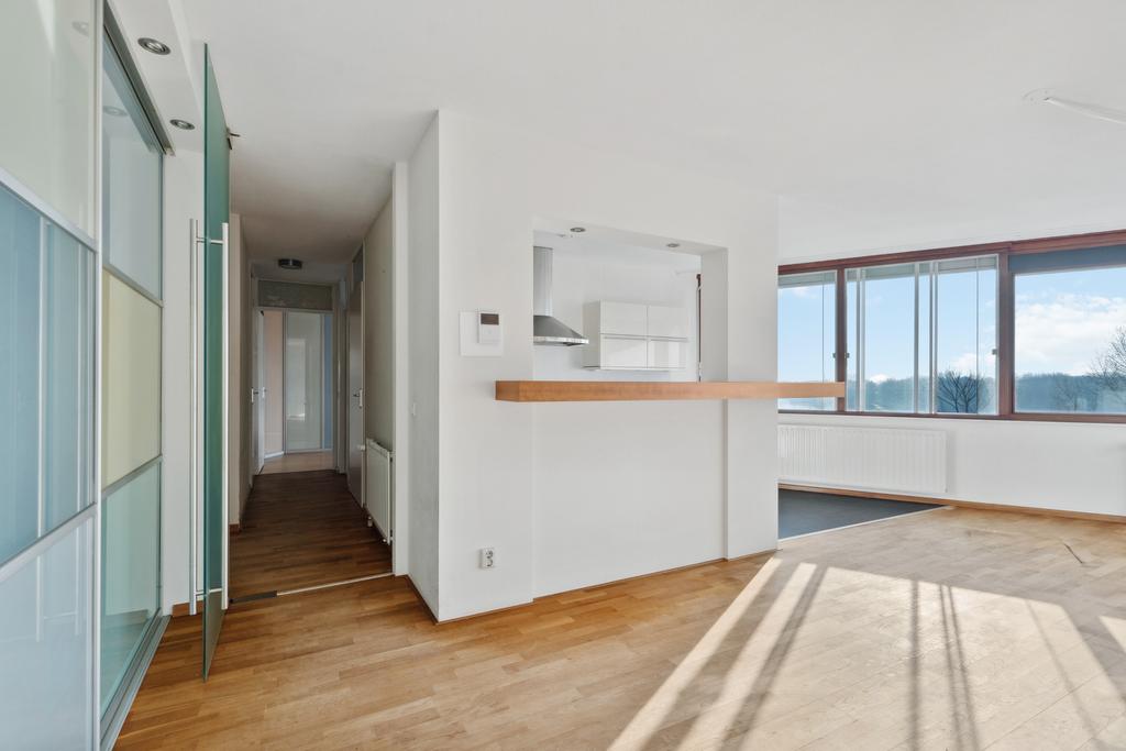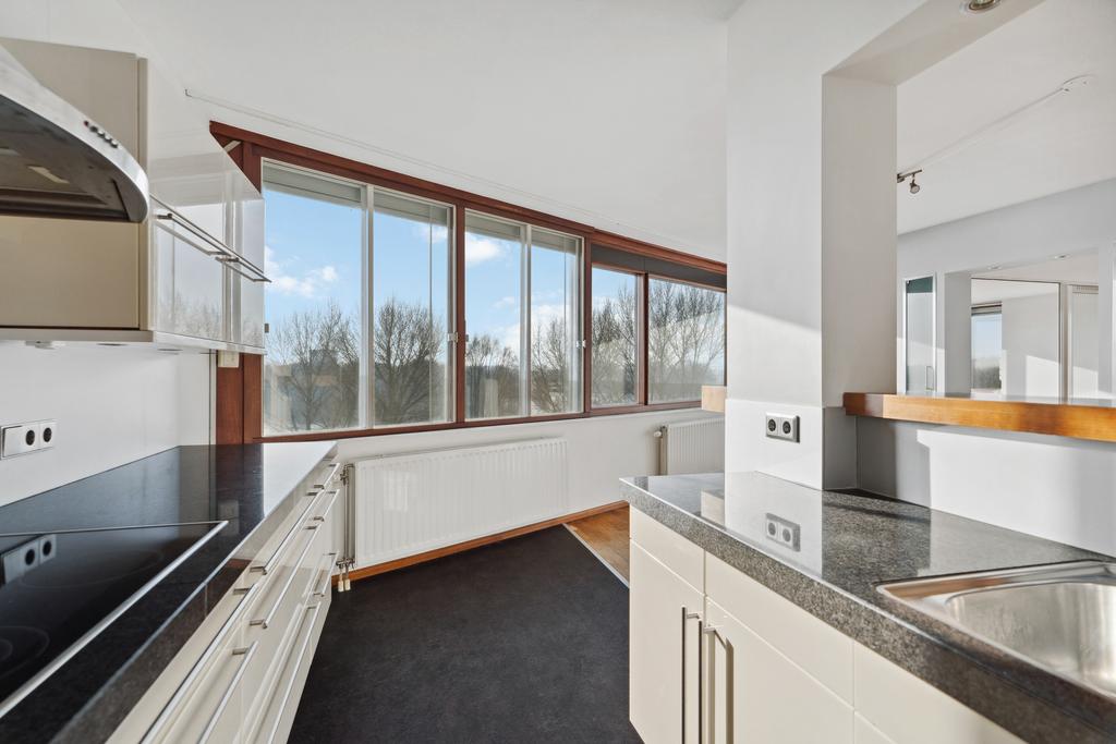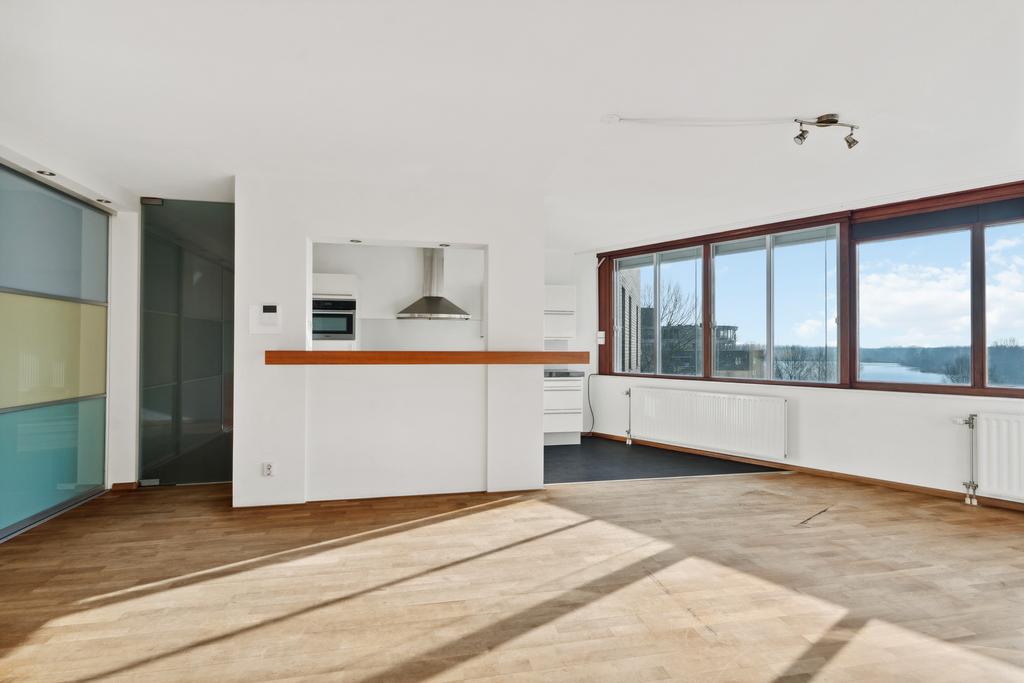Loop vanuit de hal door naar de woonkamer, een zeer ruime en lichte ruimte dankzij de grote raampartijen die een prachtig uitzicht over het Weerwater, maar ook op naastgelegen strandje en het park bieden. De ingebouwde design kastenwand biedt veel praktische opbergruimte, terwijl de woonkamer genoeg plaats heeft voor meerdere zithoeken en een eettafel. Vanuit de woonkamer heb je middels de schuifpui toegang tot de loggia (inpandig balkon) welke eventueel ook geheel bij de woonkamer te betrekken is.