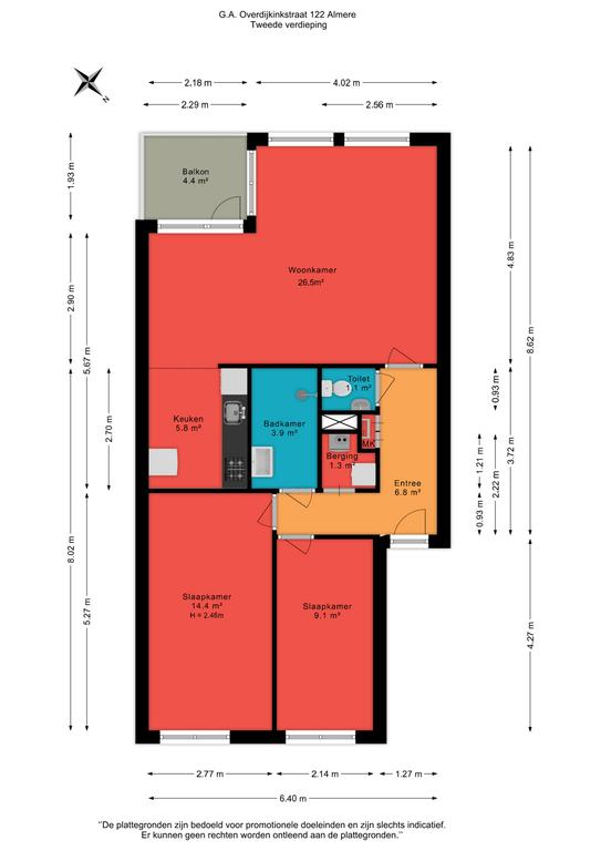 Deze informatie is met zorg samengesteld, maar er wordt geen aansprakelijkheid aanvaard voor eventuele onvolledigheden, onjuistheden of andere tekortkomingen, noch voor de gevolgen daarvan. Wij benadrukken dat de koper een wettelijke onderzoeksplicht heeft. Alle opgegeven maten zijn conform NEN 2580 gemeten en zijn indicatief.