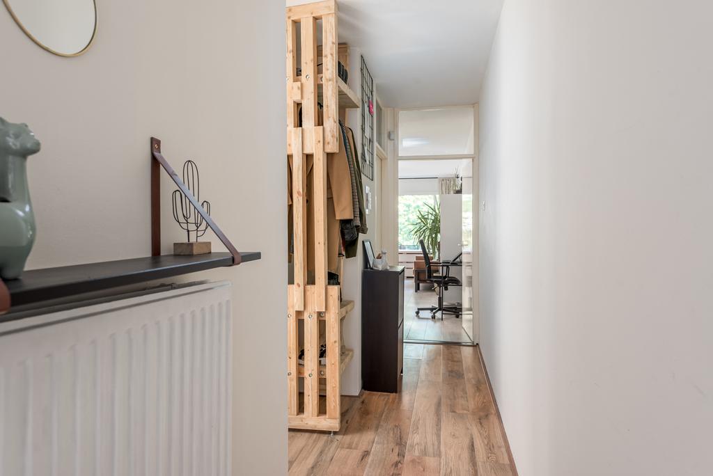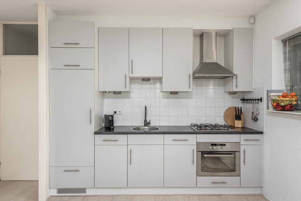 Entree met ruime hal, meterkast, slaapkamer en badkamer. Aan het einde van de hal tref je de woonkamer. Deze geniet van veel lichtinval door de vele raampartijen aan weerszijden van het appartement. De woonkamer is uitgerust met een open keuken welke is voorzien van diverse inbouwapparatuur waaronder een combi magnetron/oven, koelkast, 4-pits gasfornuis en RVS-afzuigschouw. De woonkamer is voorzien van een lichte laminaatvloer en een openslaande deur naar het gezellige balkon. Op het balkon geniet je veel privacy vanwege de aanwezigheid van de vele bomen rondom. Omgeven door groen én een ligging op het zuiden; recreëren kan hier gewoon thuis…