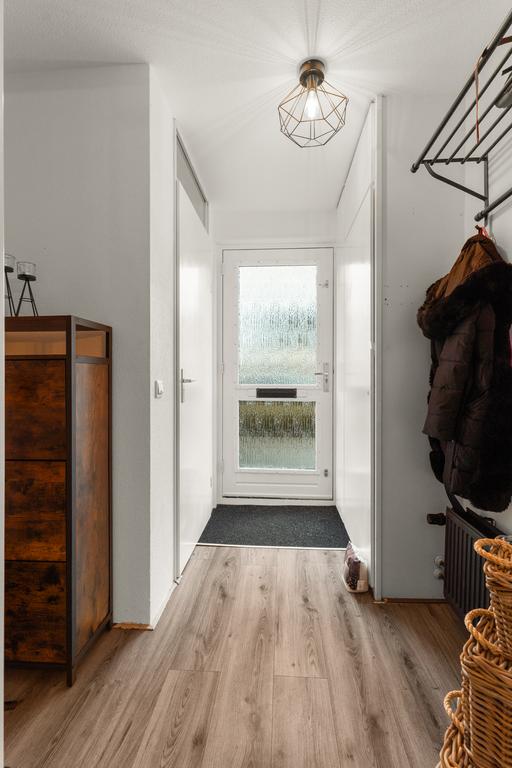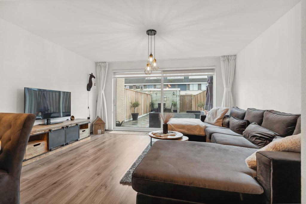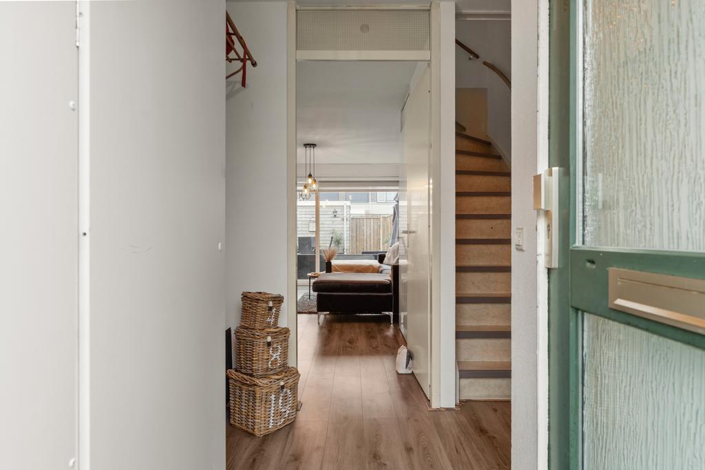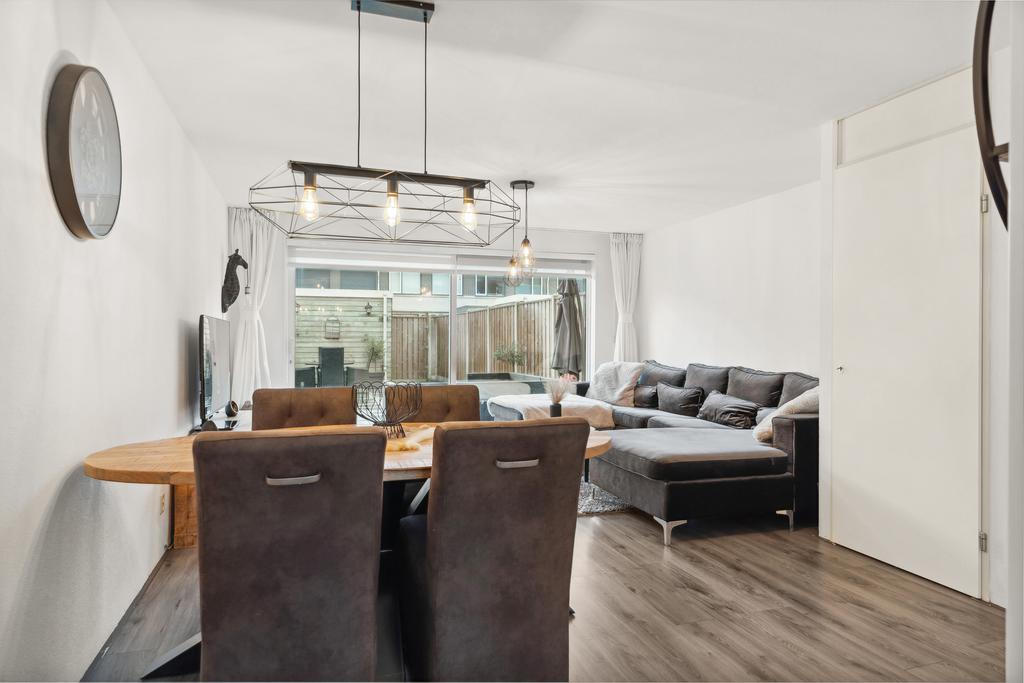 Via de voortuin bereik je de entree. Je komt de woning binnen in de hal met meterkast, toilet met fontein en trapopgang naar de eerste verdieping. Vanuit de hal kom je de tuingerichte woonkamer met glazen schuifpui binnen. Deze raampartij biedt naast veel lichtinval prettig zicht op de keurige, zonnige tuin. De ruimte is goed in te delen en biedt plaats voor een comfortabele zit- en eethoek. Ook is hier een trapkast met praktische bergruimte aanwezig.