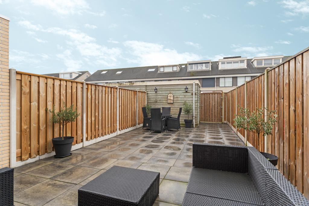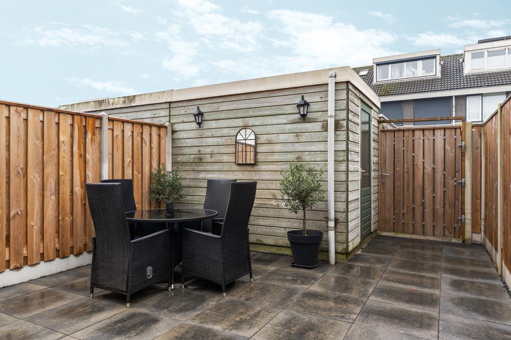 De woning beschikt over een heerlijke tuin met een zonnige ligging op het zuiden. In 2023 zijn zowel de voortuin als de achtertuin prachtig aangelegd met grote tuintegels, en zijn er nieuwe schuttingen geplaatst. Achter in de tuin staat een vrijstaande houten berging met een overkapping, perfect voor het opbergen van fietsen, gereedschap en tuinmeubilair. Bovendien is de tuin ook toegankelijk via een eigen achterom.