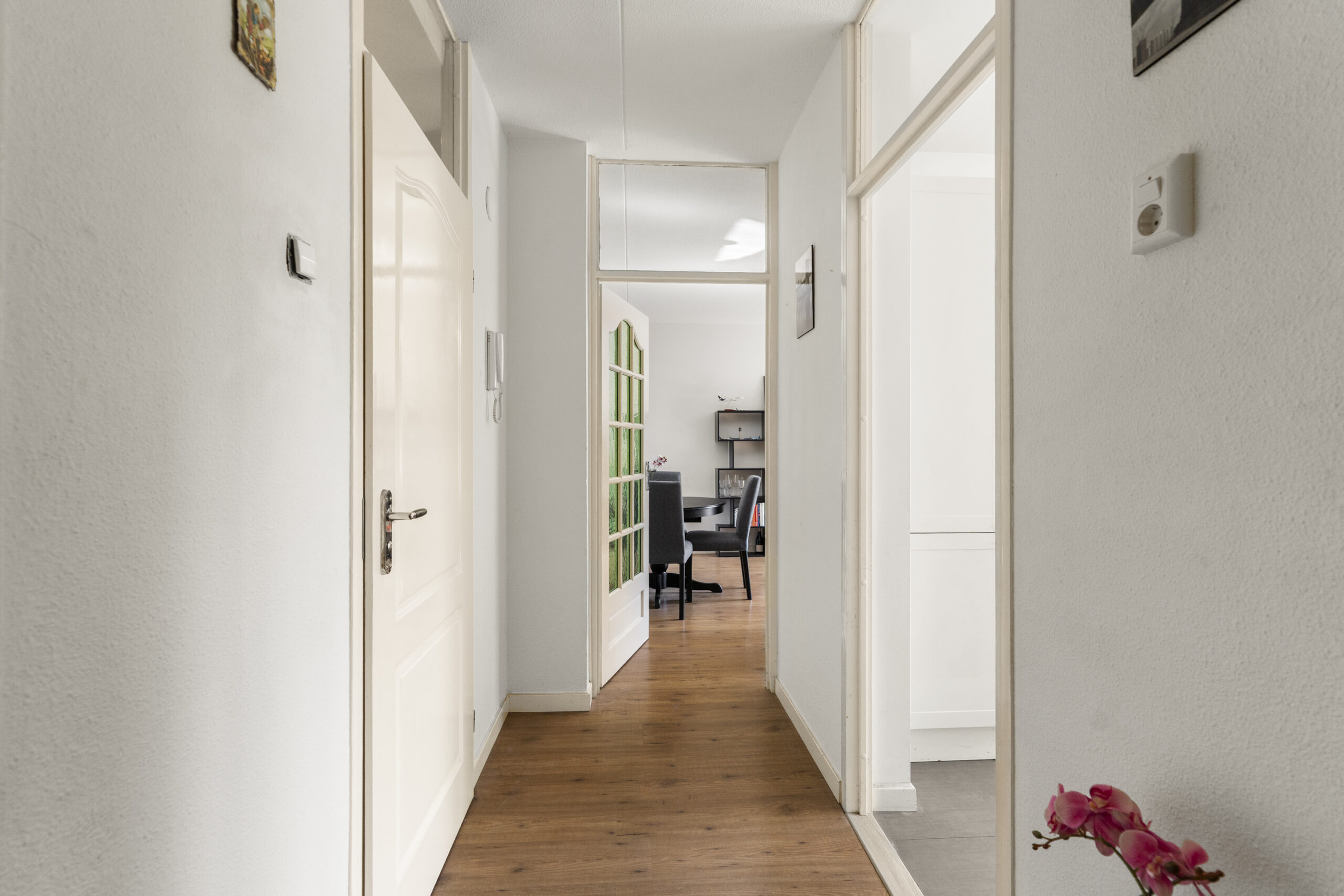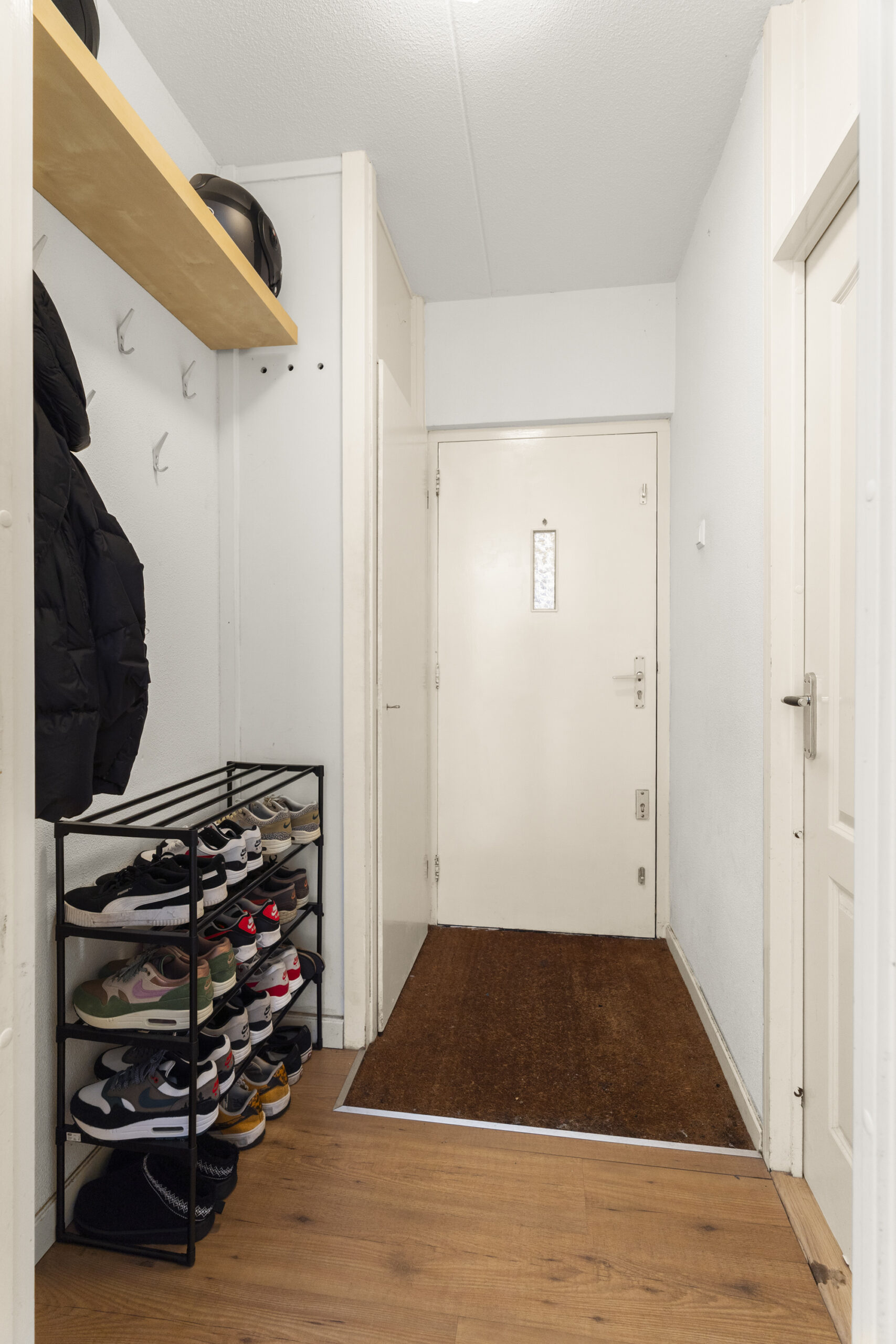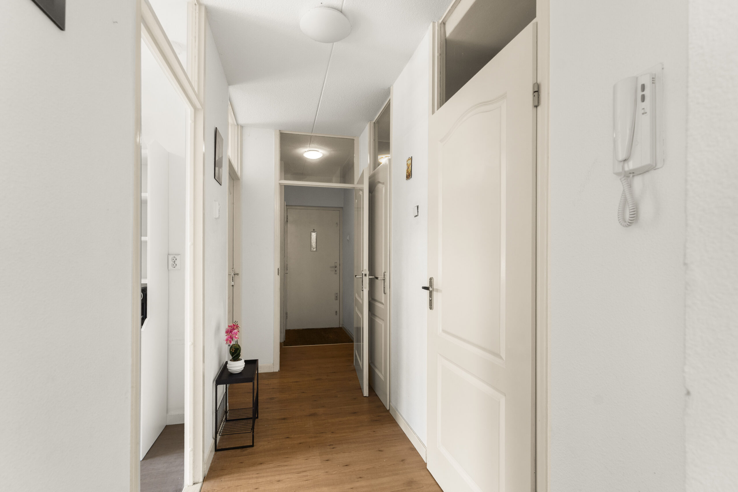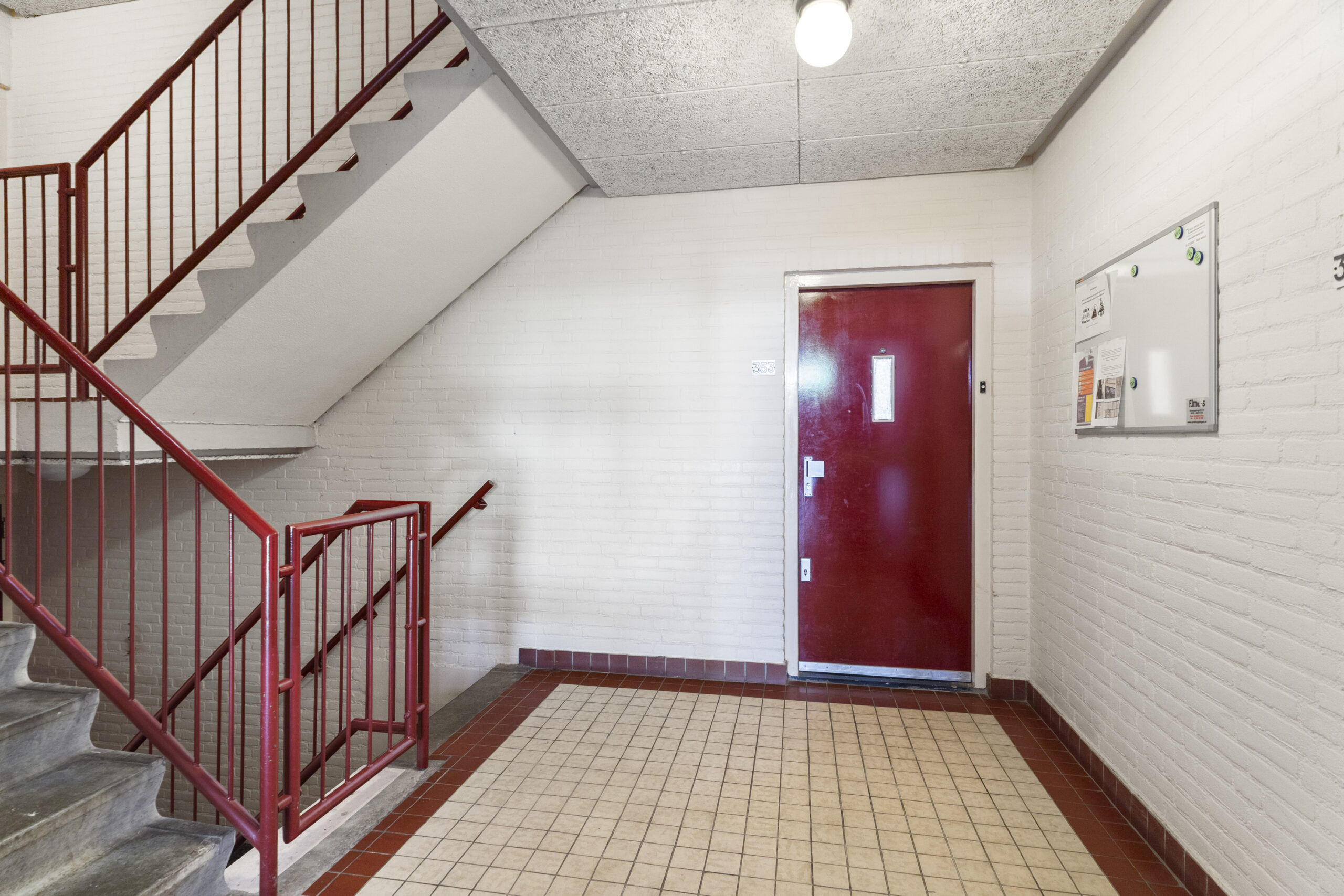 U parkeert uw auto gratis voor de deur. Via de hoofdentree loopt u zo rechtsdoor het appartement binnen. De gang geeft u toegang tot alle ruimten: het voorportaal met de meterkast en plaats voor de jassen en tassen, de wasruimte/inpandige berging, het toilet, de badkamer, de grote slaapkamer, de keuken en de woonkamer met de 2e slaapkamer.