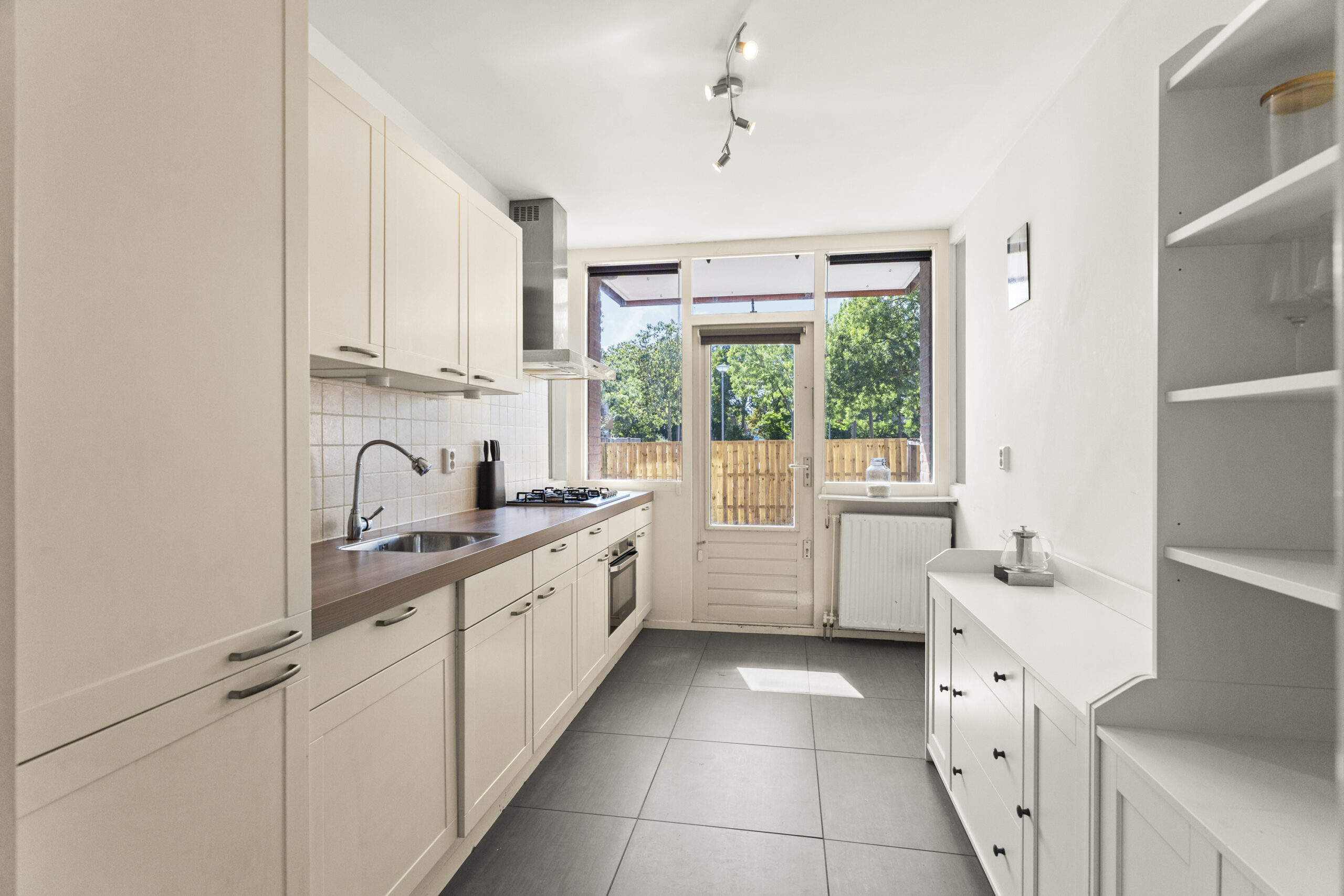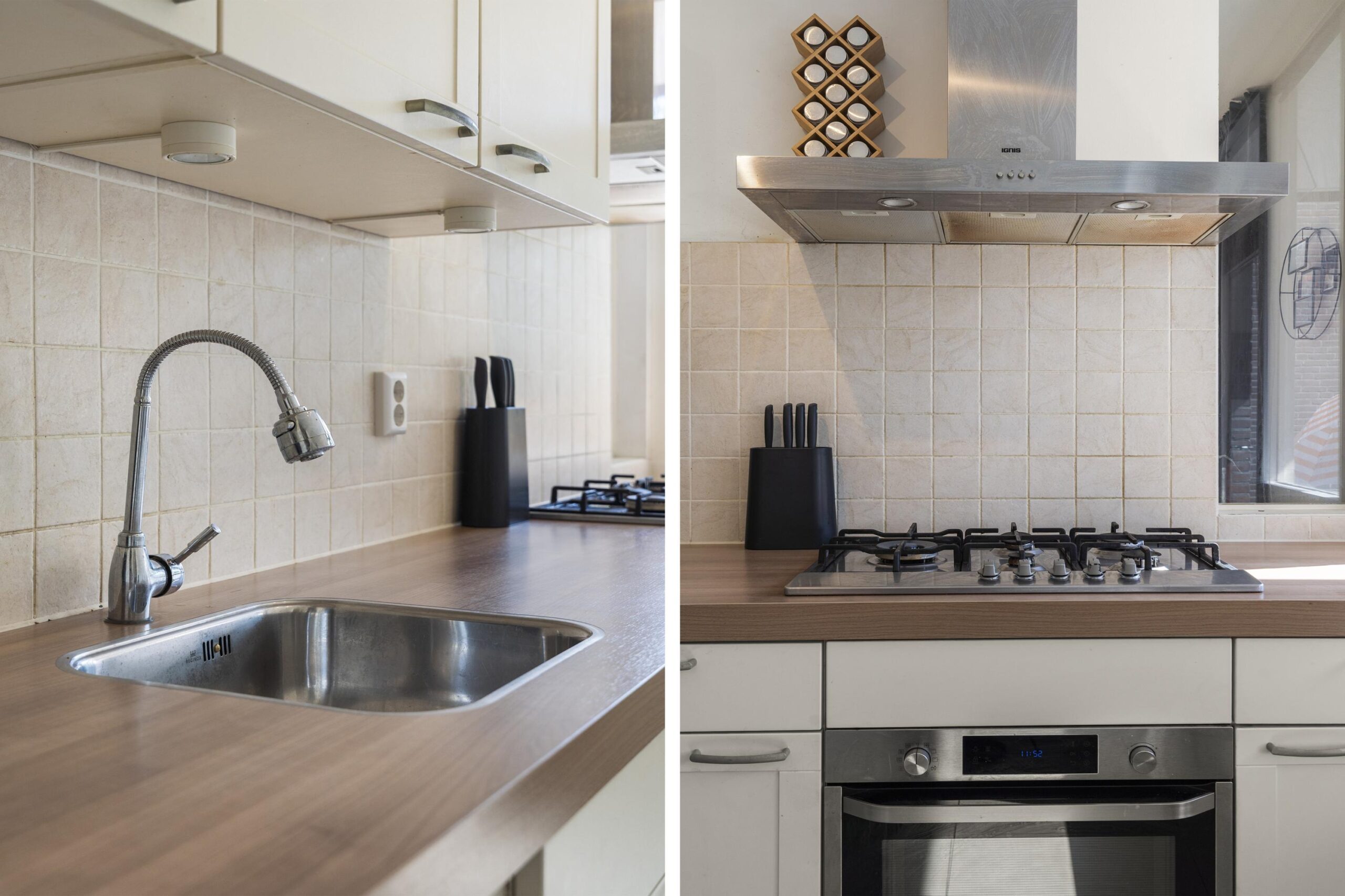Naast de woonkamer bevindt zich de keuken met toegang tot de tuin. U heeft hier genoeg ruimte om dagelijks lekker te koken! Er is zelfs plaats voor een ontbijttafel. De keuken is bovendien voorzien van inbouwapparatuur als een koelkast, vriezer, vaatwasser, oven en een gasfornuis met afzuigkap. Vanuit de keuken stapt u zo de heerlijke tuin in.