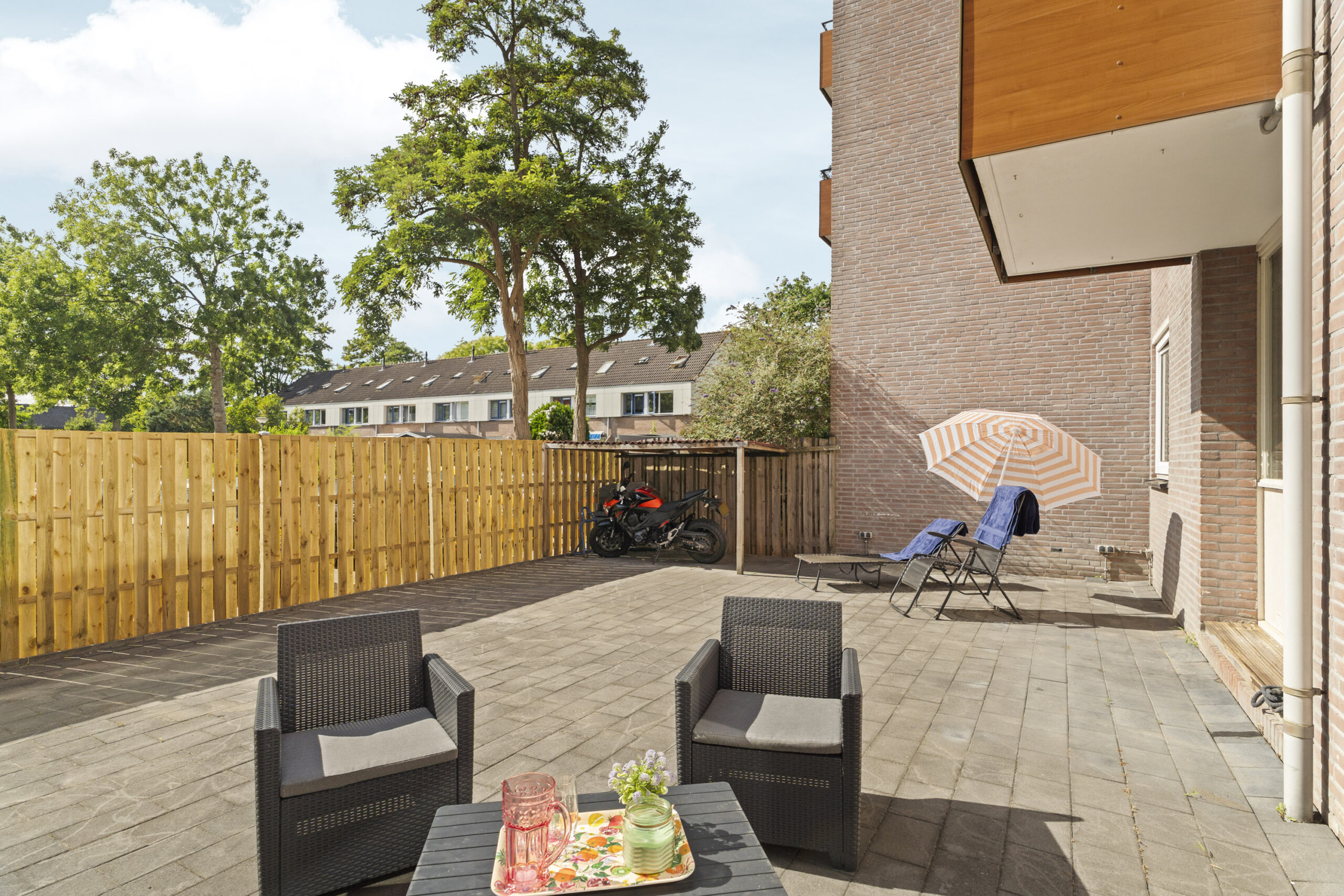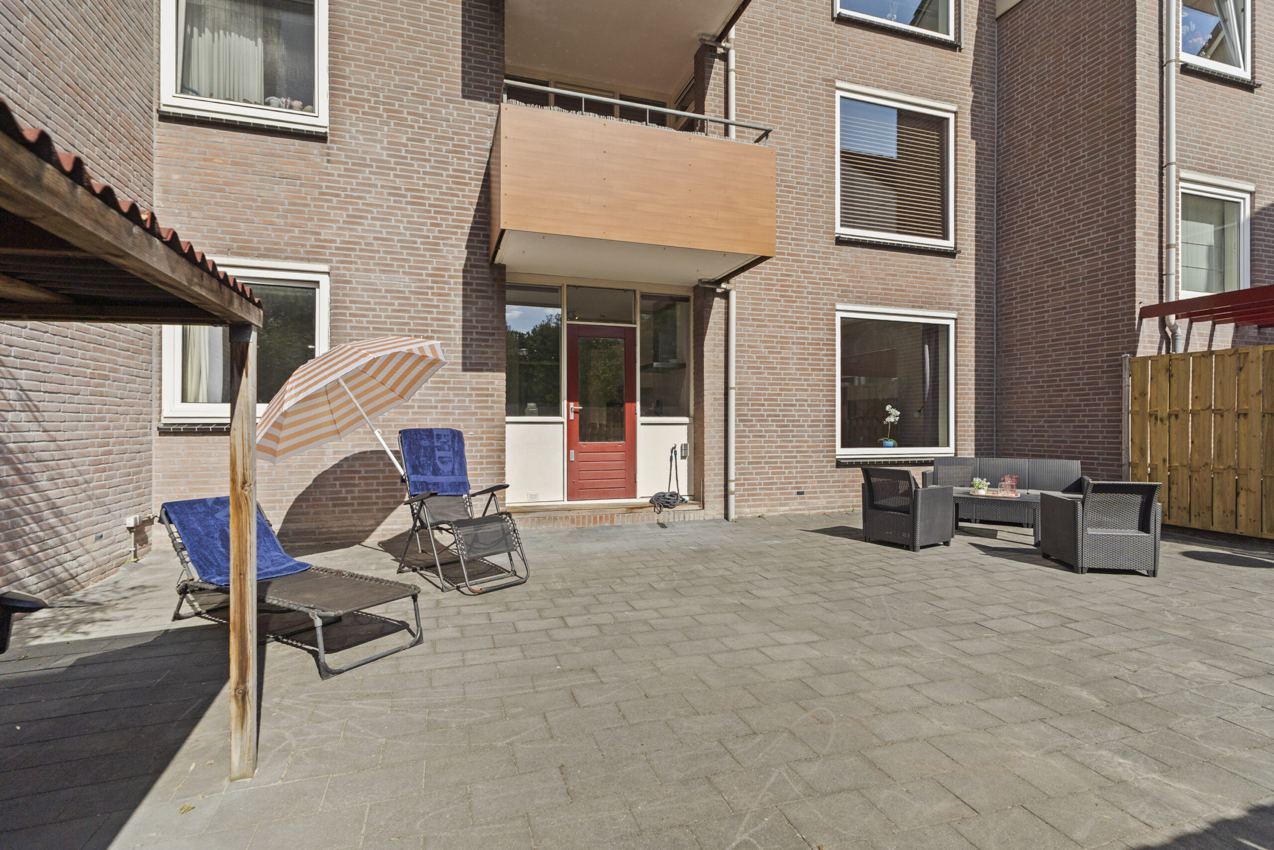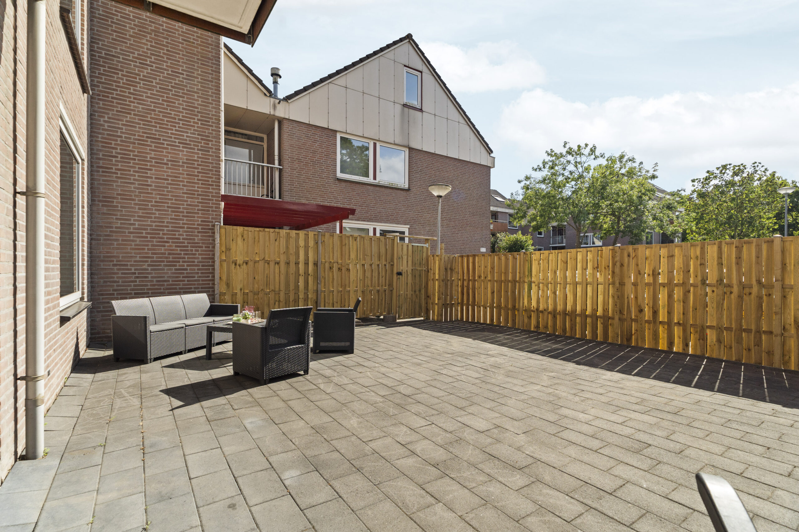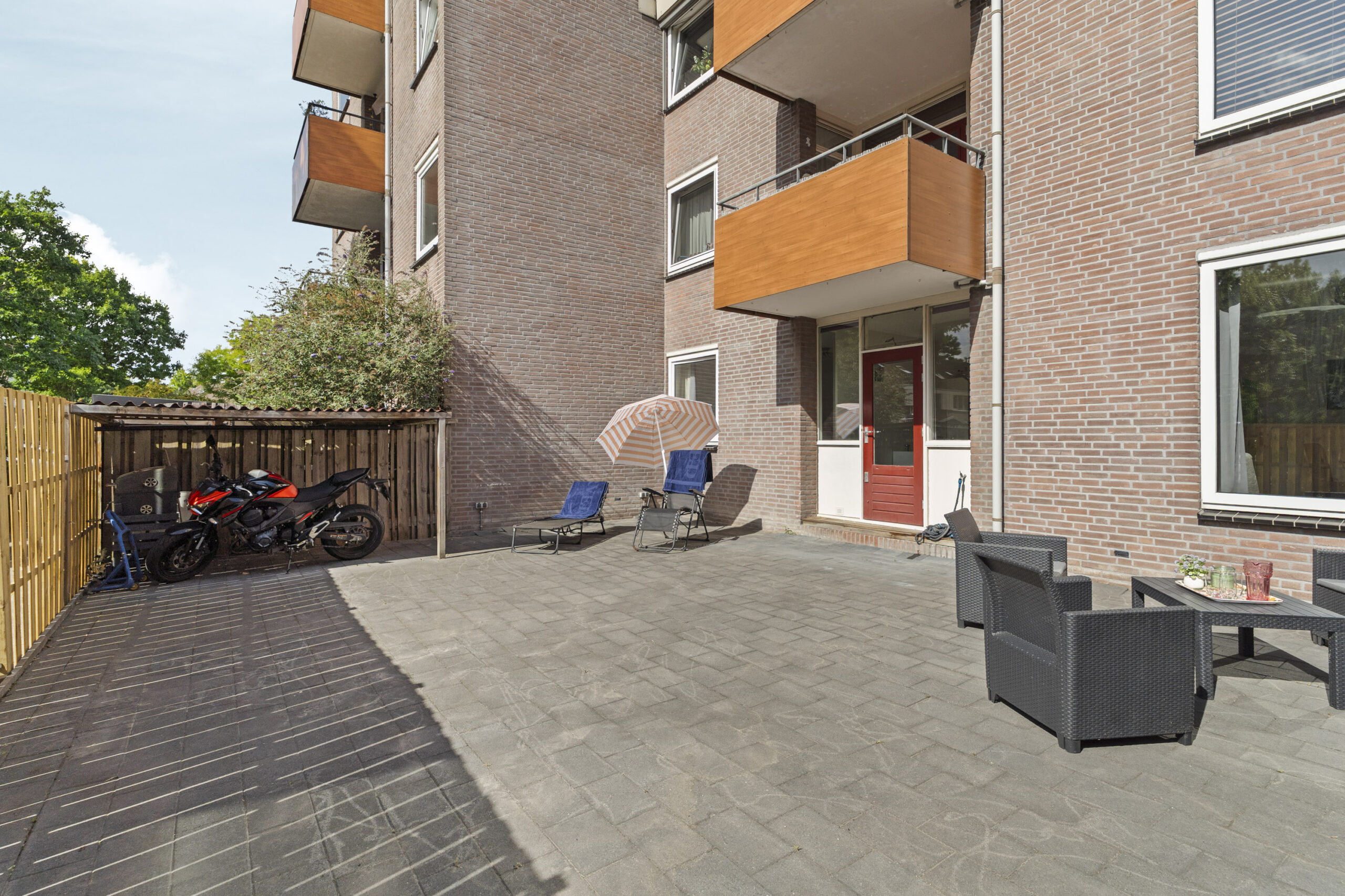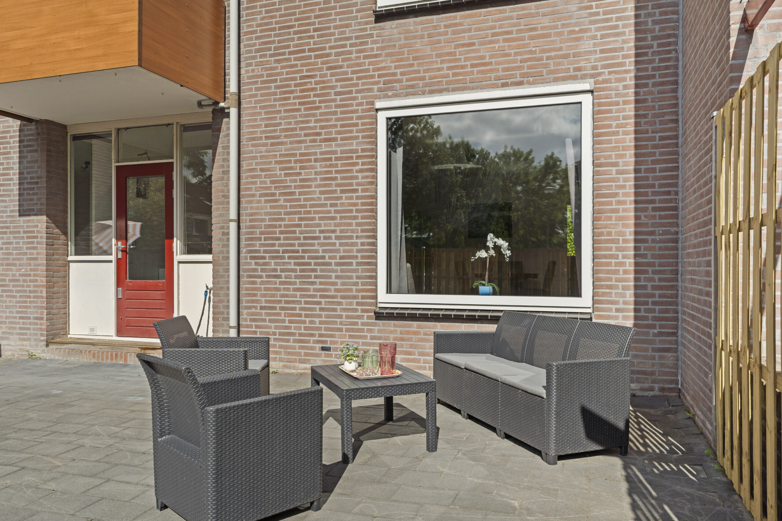De tuin is lekker groot en ligt op het zuidwesten. Er is een overkapping aanwezig; handig voor het plaatsen van een (bak)fiets, scooter of motor. De achterom in de tuin maakt het dat u zo wegfietst of meteen bij de auto bent.