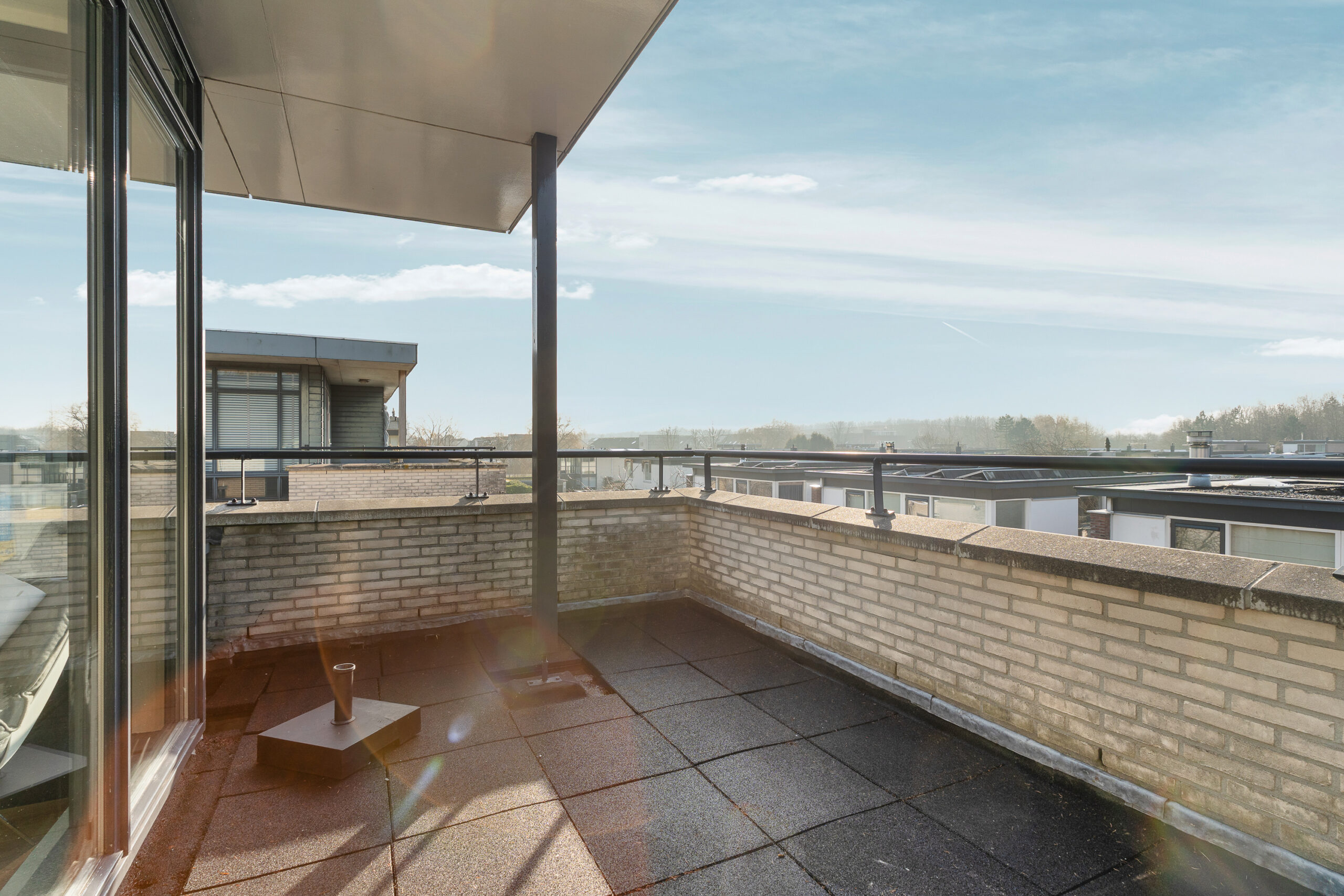 Vanuit de overloop is het dakterras bereikbaar, met een oppervlakte van circa 16,6 m². Een heerlijke buitenruimte waar je in alle rust kunt genieten van de zon én het uitzicht dat echt een waardevolle toevoeging aan deze verdieping.