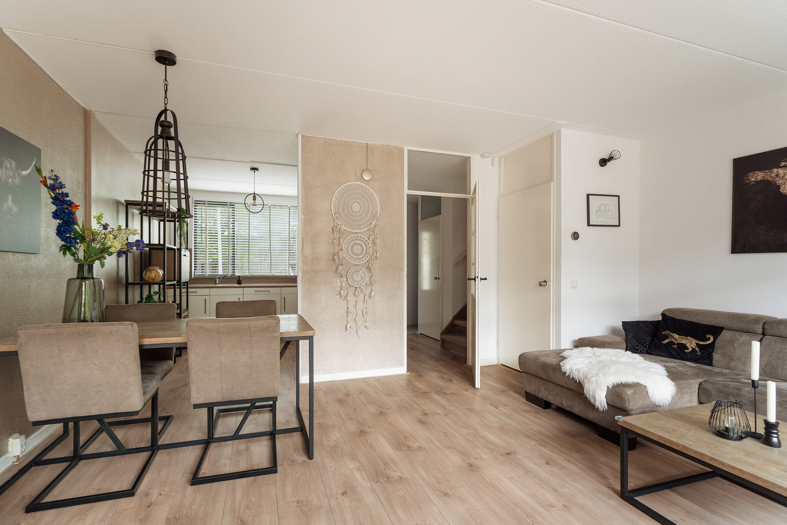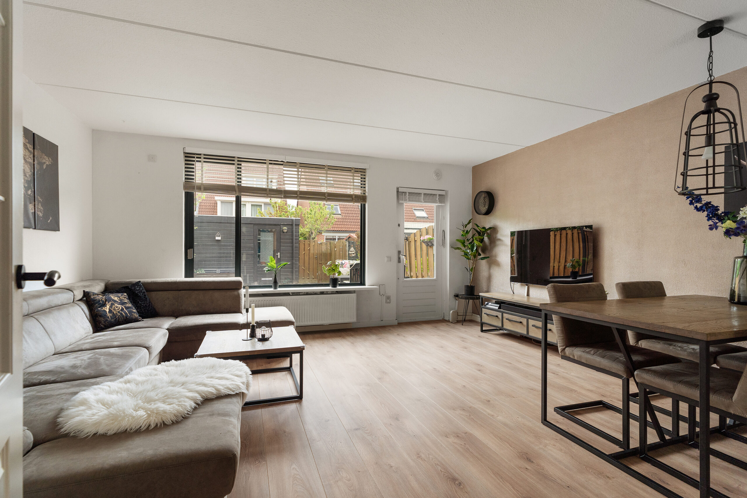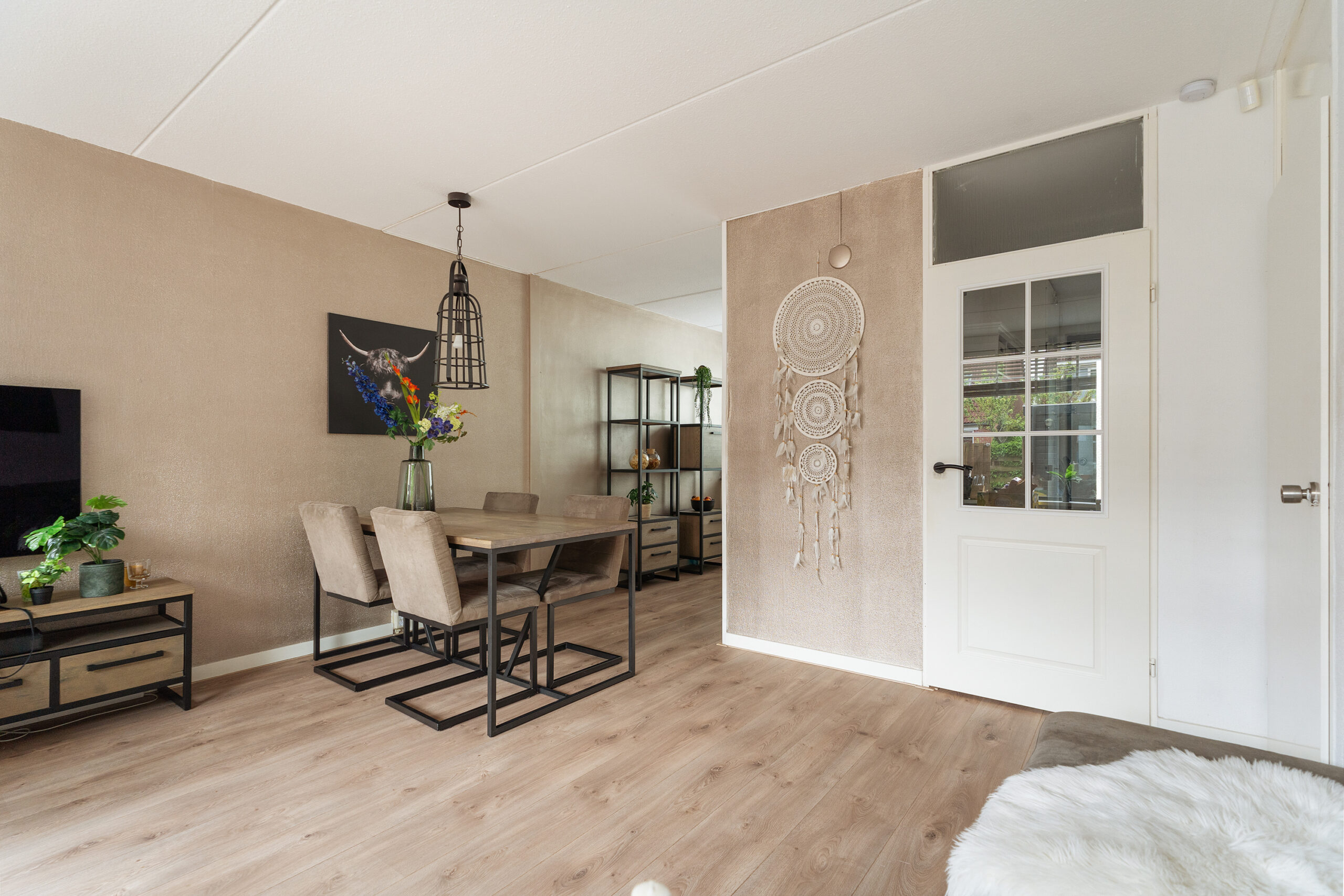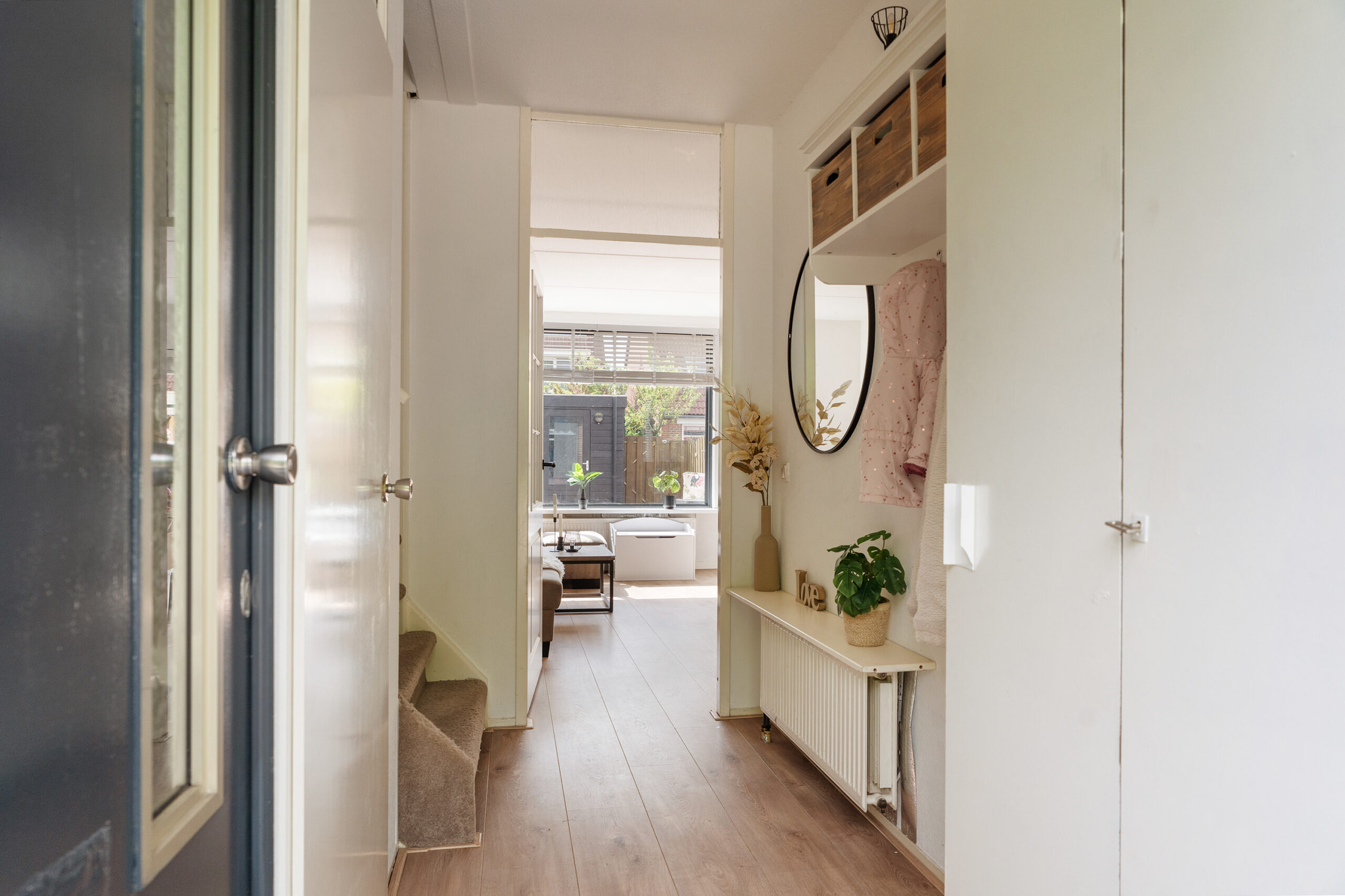 Via de verzorgde voortuin bereik je de entree van de woning. Binnenkomst in de hal met meterkast, een toilet met fontein en de trapopgang naar de verdieping. Vanuit de hal stap je de tuingerichte woonkamer binnen. De ruimte is praktisch in te delen en biedt voldoende plek voor een comfortabele zit- en eethoek. Een trapkast zorgt bovendien voor handige extra bergruimte.