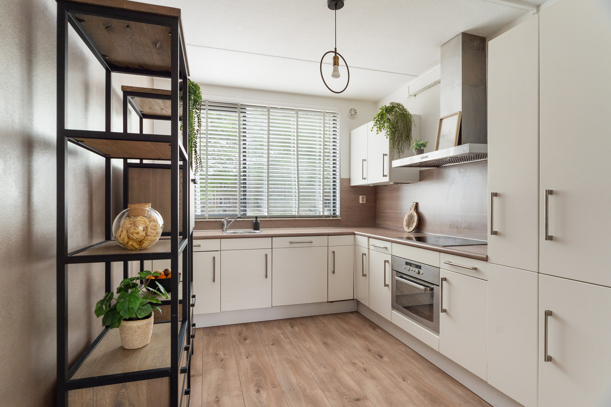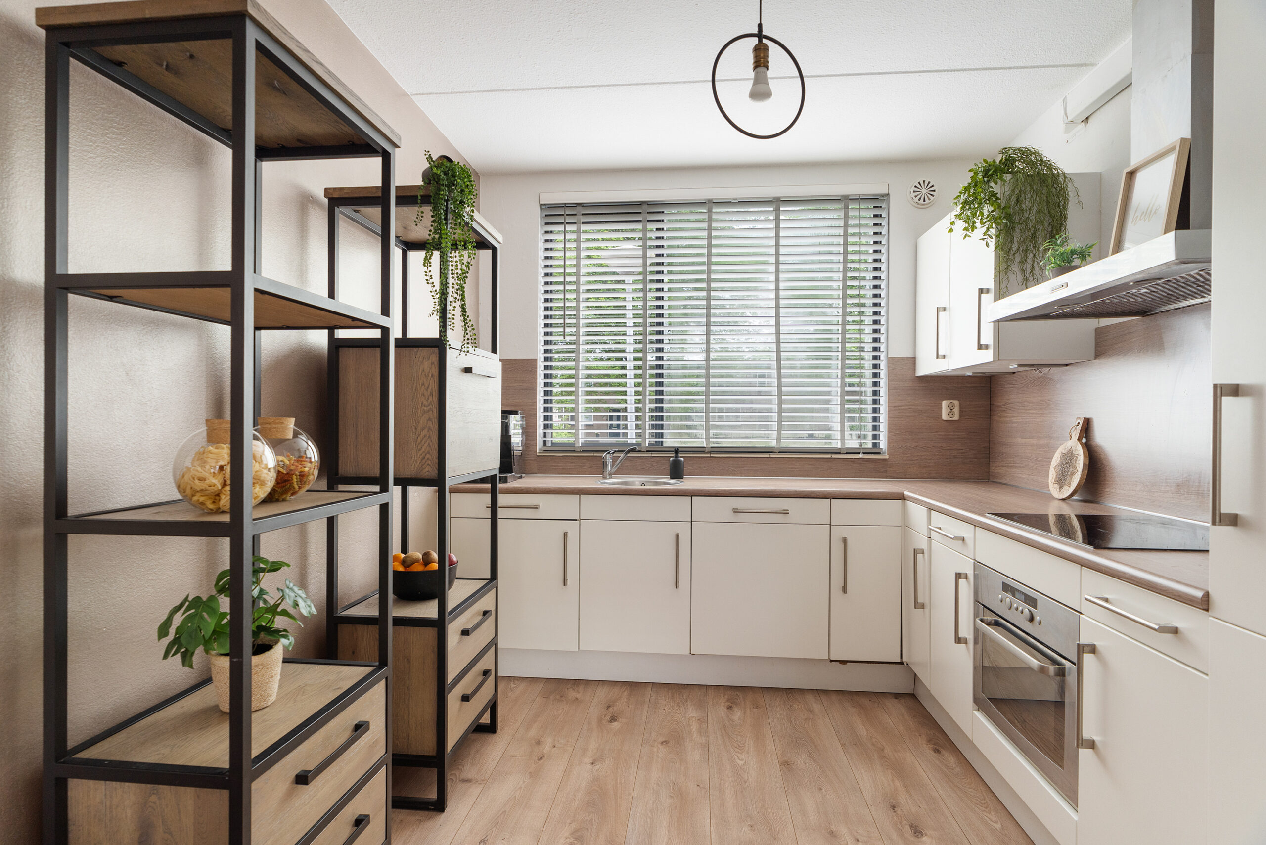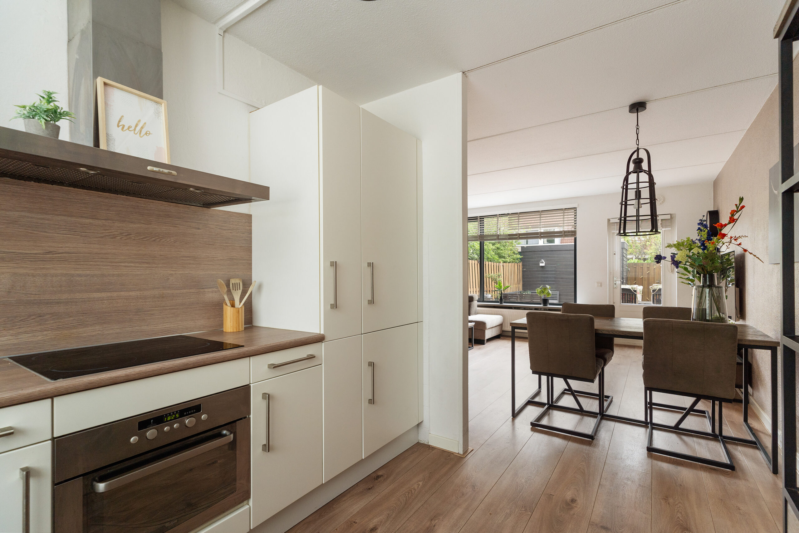 Aan de voorzijde van de woning bevindt zich de halfopen keuken, uitgevoerd in een praktische L-opstelling. De keuken is van alle gemakken voorzien en uitgerust met diverse inbouwapparatuur. Het raam aan de voorzijde zorgt voor veel natuurlijk licht, vooral ’s ochtends is het hier heerlijk licht door de opkomende zon en geeft prettig zicht op het plantsoen. De ligging aan het veld en de Vaart is ideaal voor wie privacy hoog in het vaandel staat, maar ook voor bijvoorbeeld buiten spelende kinderen die zich hier naar hartenlust in het zicht kunnen vermaken.
