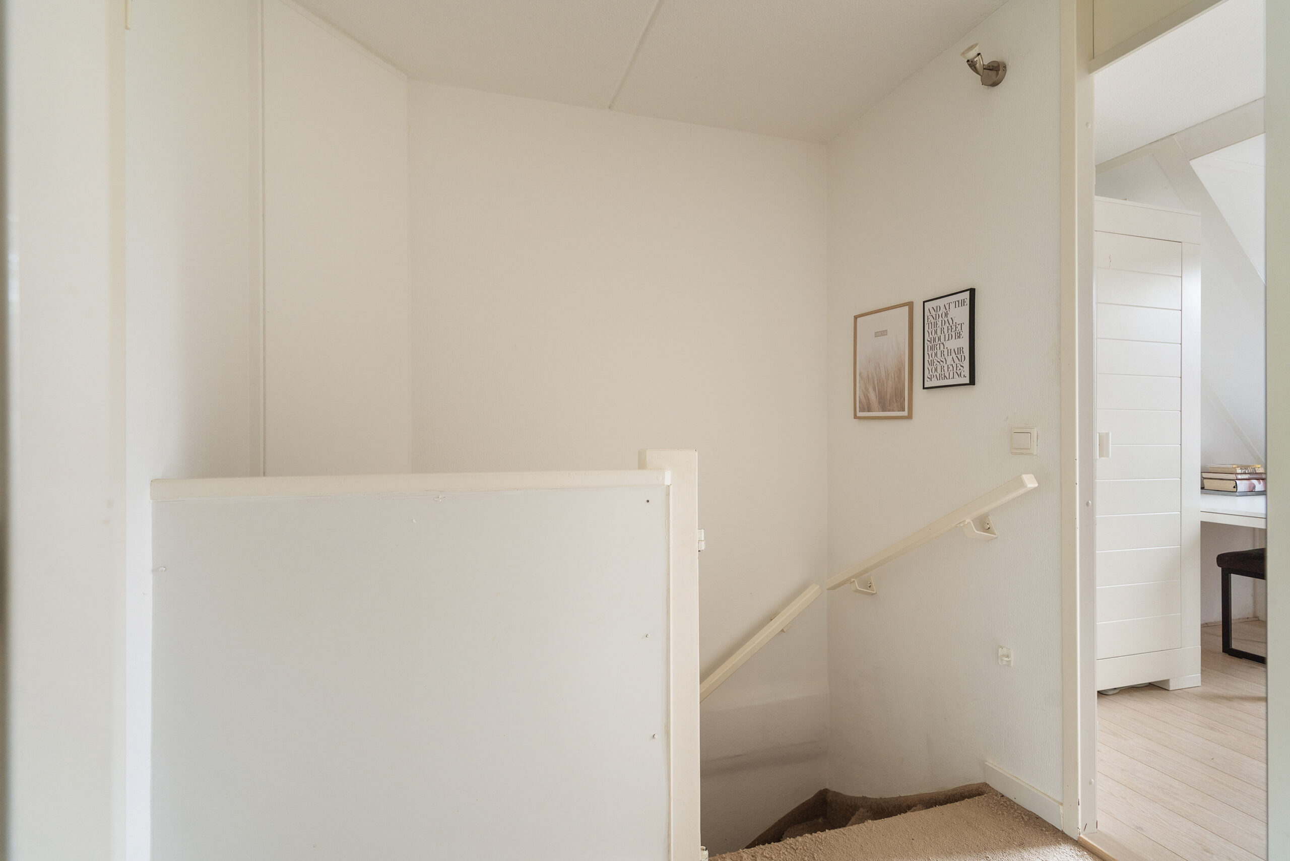 Via de overloop heb je toegang tot de verschillende vertrekken. Aan de achterzijde van de woning bevinden zich twee in elkaar overlopende kamers van ca. 6 m² en 9 m², ideaal te gebruiken als werk- en slaapkamer. Deze ruimtes zijn voorzien van een brede dakkapel (2014) met onderhoudsarme kunststof draai-/kiepramen, wat zorgt voor extra licht en ruimte.