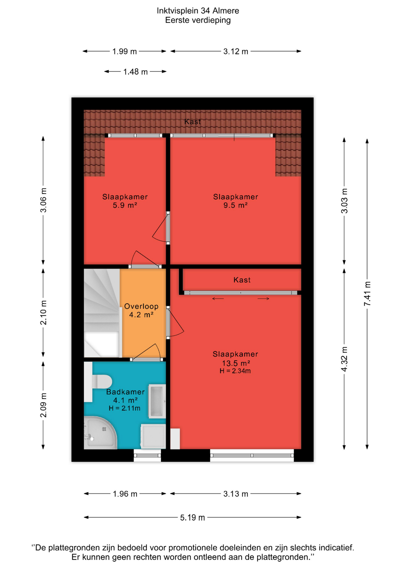 Deze informatie is met zorg samengesteld, maar er wordt geen aansprakelijkheid aanvaard voor eventuele onvolledigheden, onjuistheden of andere tekortkomingen, noch voor de gevolgen daarvan. Wij benadrukken dat de koper een wettelijke onderzoeksplicht heeft. Alle opgegeven maten zijn conform NEN 2580 gemeten en zijn indicatief.