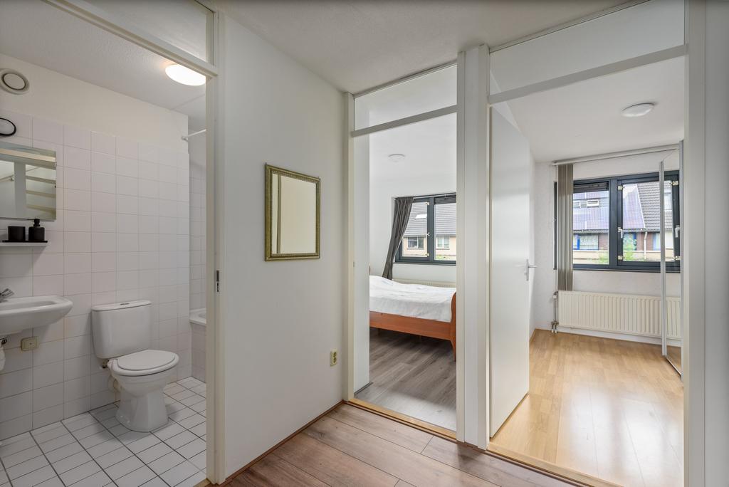 Via de vaste trap kom je op de eerste verdieping, waar je de drie slaapkamers en de badkamer vindt. De grootste slaapkamer, jouw ouderslaapkamer, bevindt zich aan de voorzijde van de woning. De twee andere slaapkamers liggen aan de achterzijde en hebben uitzicht op de tuin.