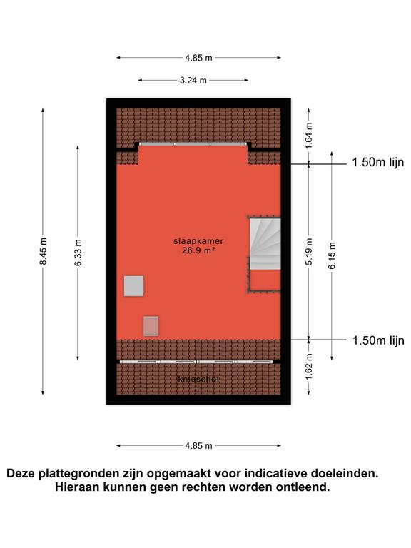Deze informatie is door ons met de nodige zorgvuldigheid samengesteld. Onzerzijds wordt echter geen enkele aansprakelijkheid aanvaard voor enige onvolledigheid, onjuistheid of anderszins, dan wel de gevolgen daarvan en wijzen de koper nadrukkelijk op zijn wettelijke onderzoeksplicht. Alle opgegeven maten zijn ingemeten conform NEN 2580 en zijn indicatief