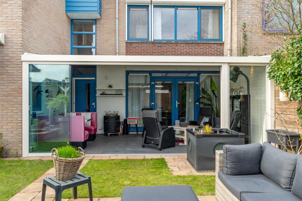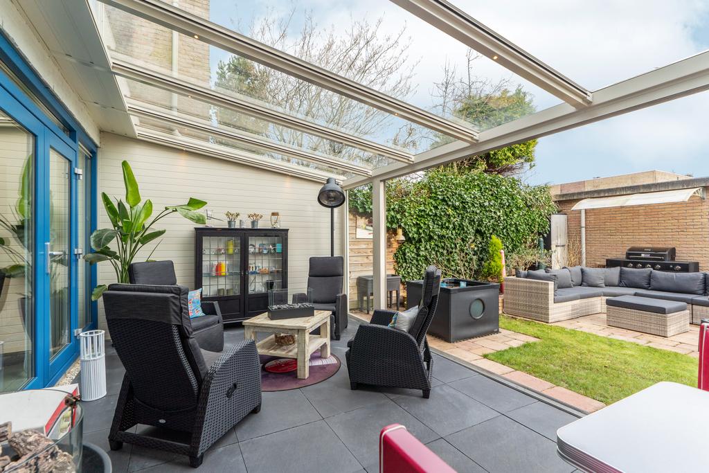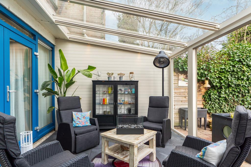• Openslaande deuren vanuit de woonkamer naar gezellige serre met zonwering (2020)