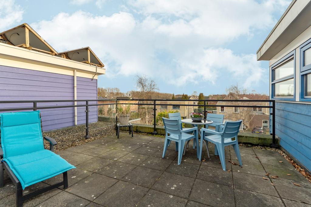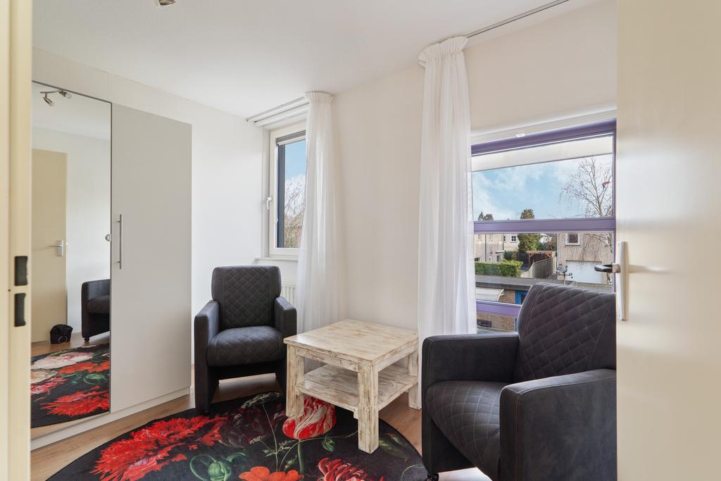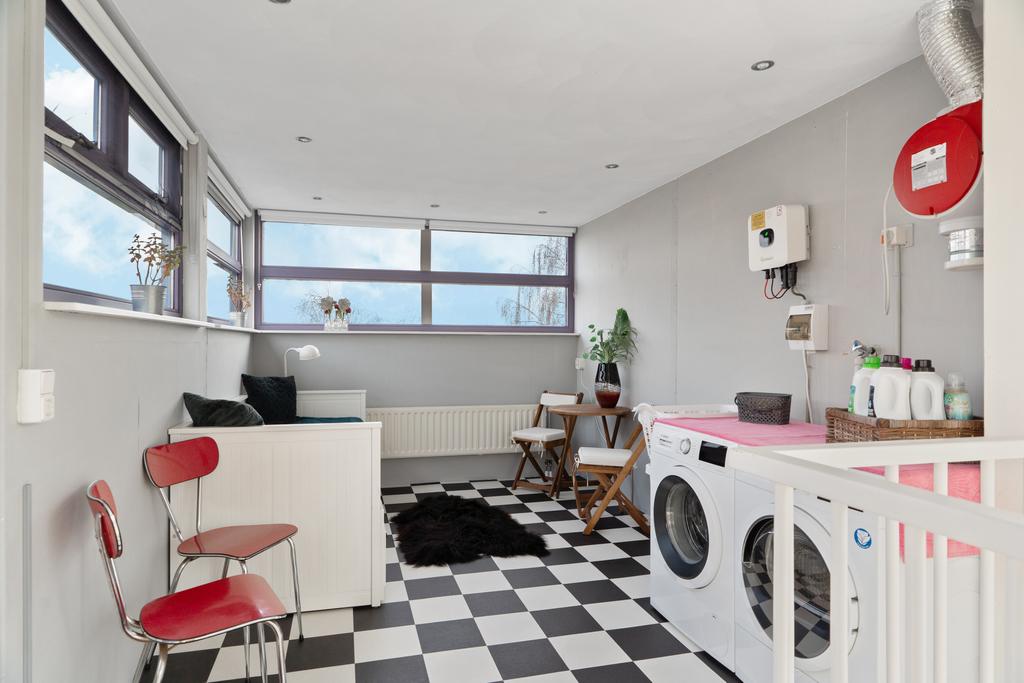 Deze veelzijdige ruimte kan voor verschillende doeleinden worden gebruikt, zoals een extra slaapkamer, werkkamer of hobbyruimte. Ook vind je hier de aansluiting voor de wasmachine. Vanuit deze kamer heb je toegang tot het royale dakterras met zicht op het bos van ongeveer 27m², waar je in alle privacy van de zon kunt genieten.