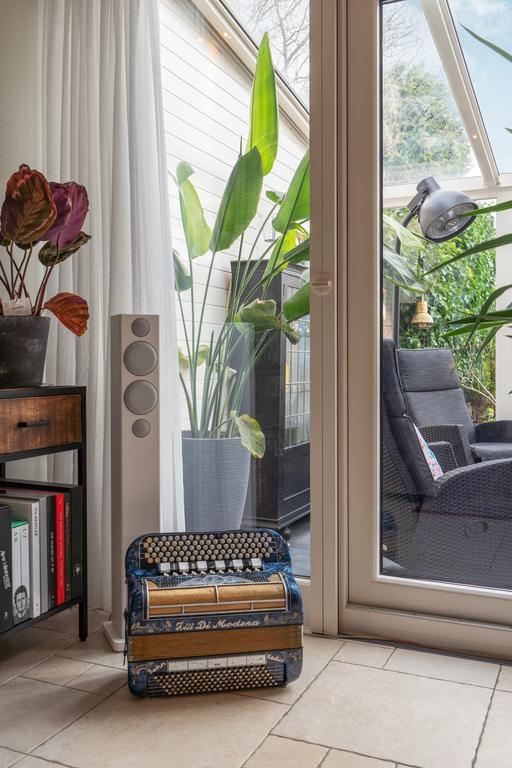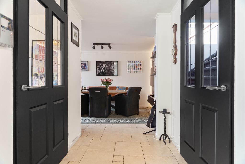 Betreed deze prachtige tuin en laat je verrassen door de aangebouwde serre en de knusse zithoeken die deze zonnige buitenruimte biedt. Bij binnenkomst ervaar je meteen de unieke kenmerken van deze woning, dankzij de speelse indeling. Vanuit de entree met garderobe leidt een gang naar de ruime woonkamer aan de rechterkant, die verbonden is met de gezellige serre via openslaande deuren.