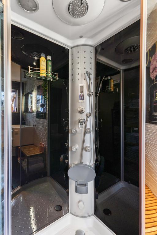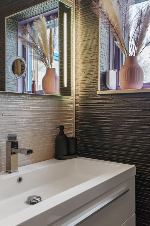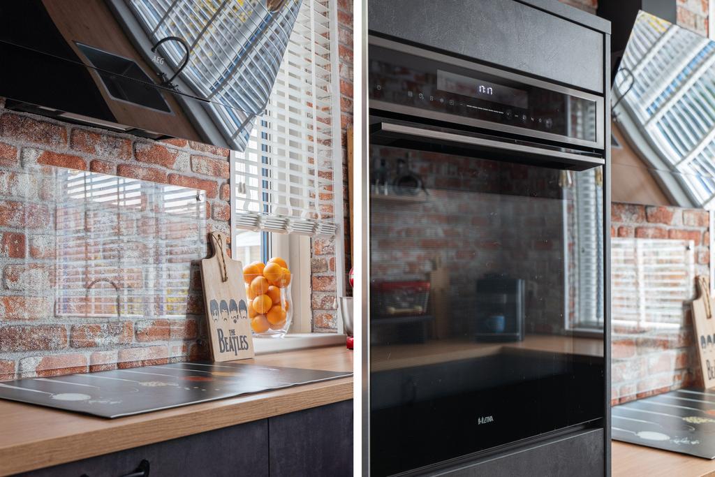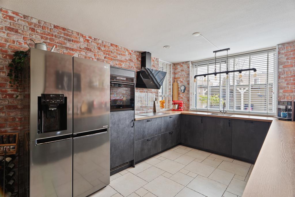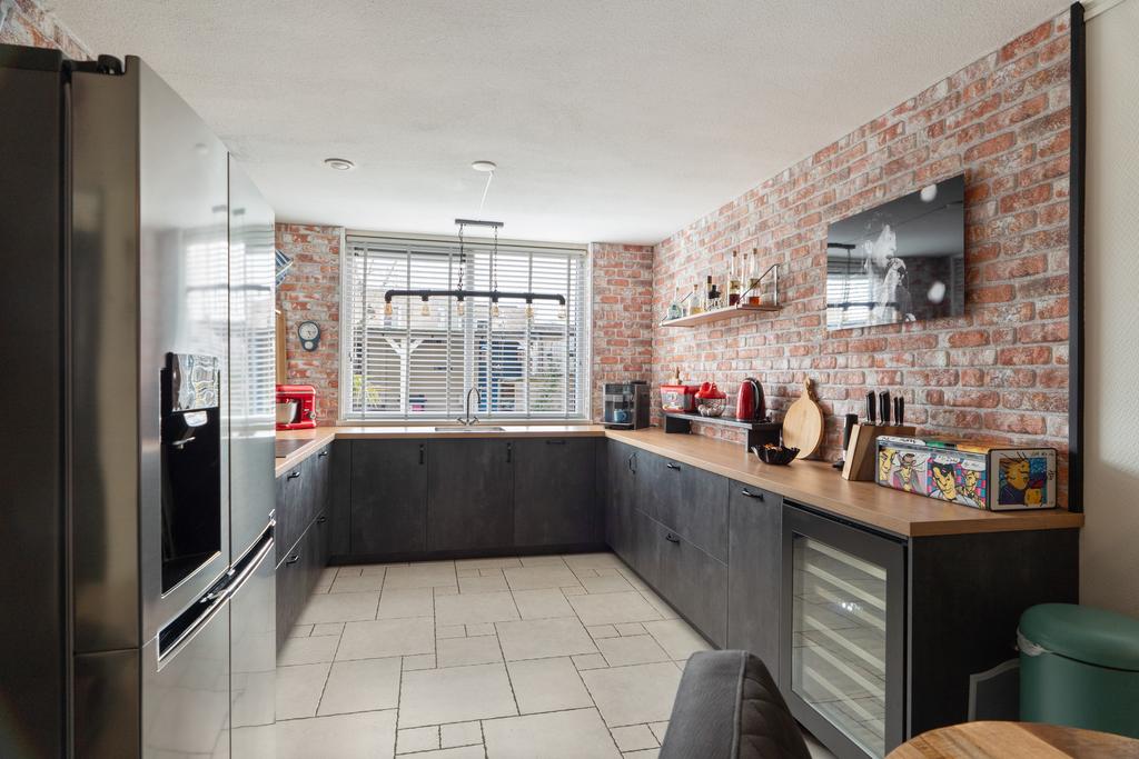 De luxe woon-/eetkeuken uit 2022 is opgesteld in een U-vorm en is volledig uitgerust met moderne apparatuur, waaronder een inductiekookplaat, automatische afzuigschouw, vaatwasser, combi-ovenmagnetron, luxe wijnkoeler en een vrijstaande Amerikaanse koelkast.
