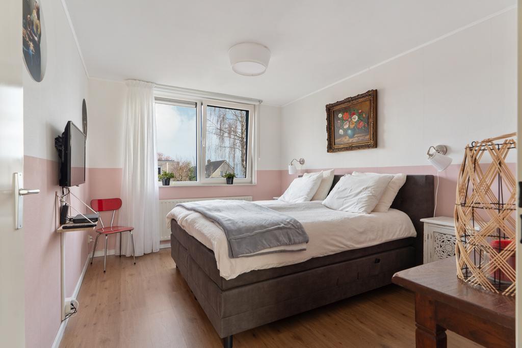 Betreed de eerste verdieping vanuit de hal en ontdek een functionele indeling met drie ruime slaapkamers, een overloop en een ruime badkamer. De master bedroom (nu in gebruik als hobbykamer/ thuiskantoor) gelegen aan de voorzijde, is zo'n 20 m², terwijl de tweede slaapkamer aan de achterzijde ongeveer 12 m² groot is. De derde slaapkamer, momenteel in gebruik als riante kastenkamer/walk in closet, heeft een oppervlakte van circa 10 m².