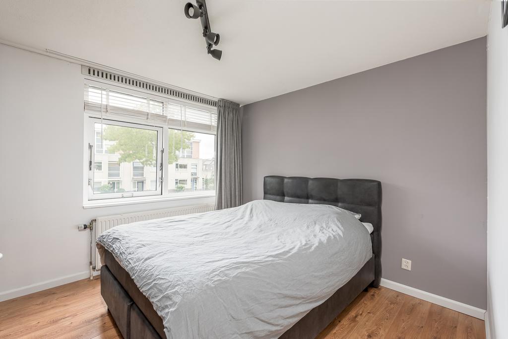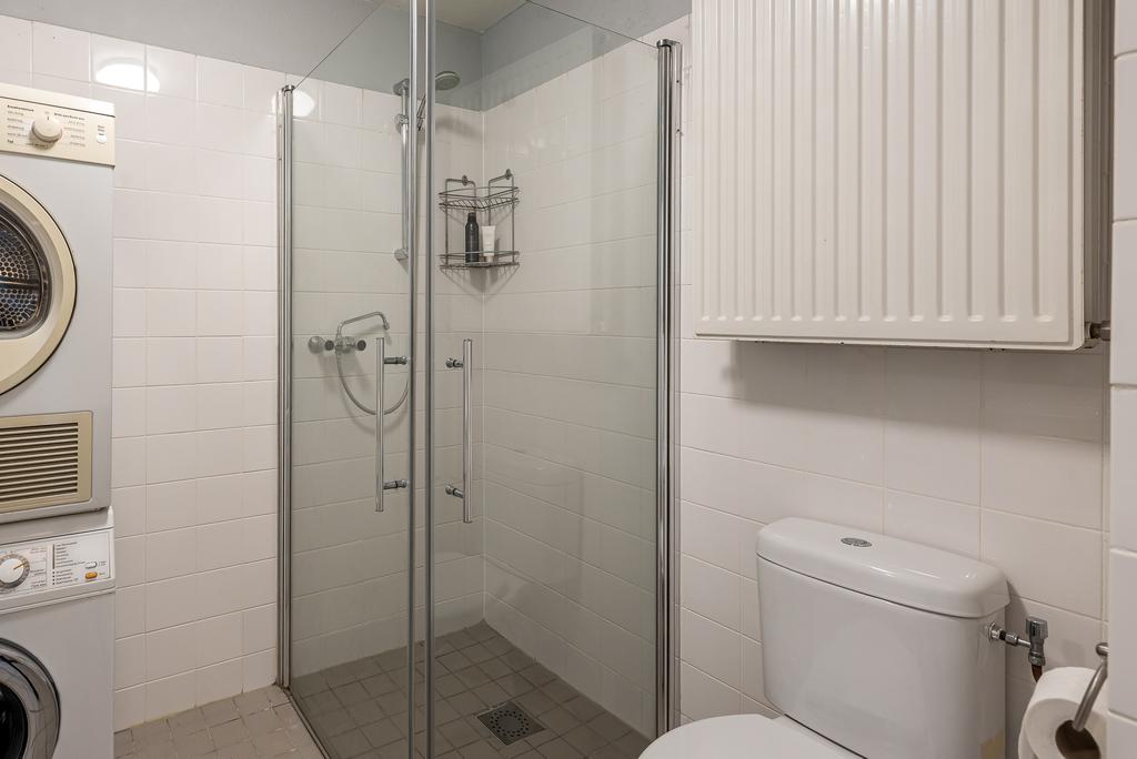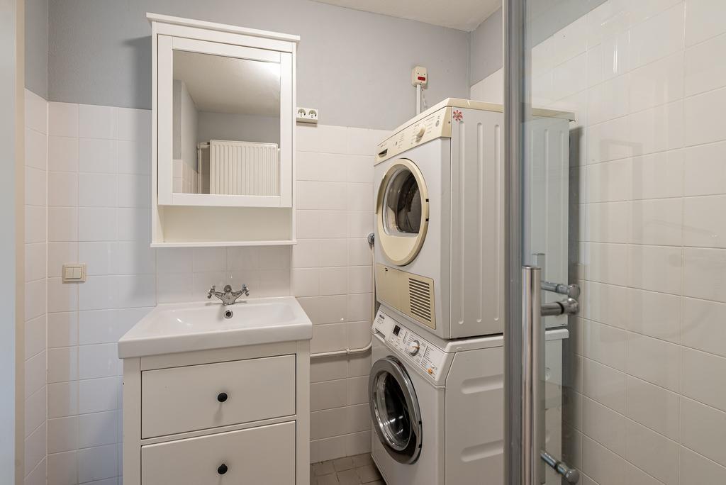 De grote slaapkamer van circa 12m² bevindt zich aan de voorzijde van het appartement. De badkamer is voorzien van licht tegelwerk tot bijna aan het plafond. Verder vindt je in de badkamer een douche met douchecabine, toilet, wastafel met meubel en spiegel. Tevens is hier ook de wasmachine en droger aansluiting te vinden.