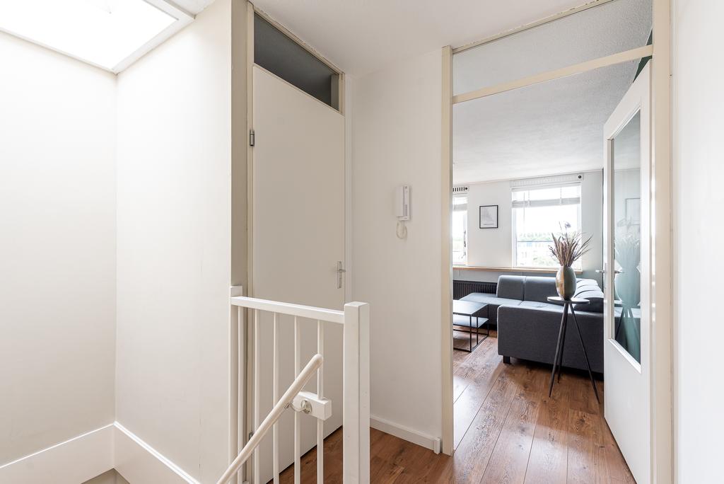 Via de entree kom je binnen in de hal van het appartement. De hal is ruim opgezet en vanuit hier zijn er diverse ruimtes te betreden waaronder de grote slaapkamer en de badkamer. Tevens is hier ook de meterkast te vinden.