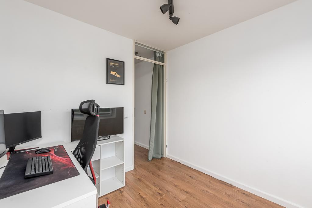 Vervolgens ga je met de vaste trap naar de tweede verdieping van het appartement. Op deze verdieping bevindt zich nog een ruime slaapkamer van circa 7m² wederom gelegen aan de voorzijde van het appartement en een separate toilet. Vanuit de overloop stap je tevens de ruime woonkamer in.