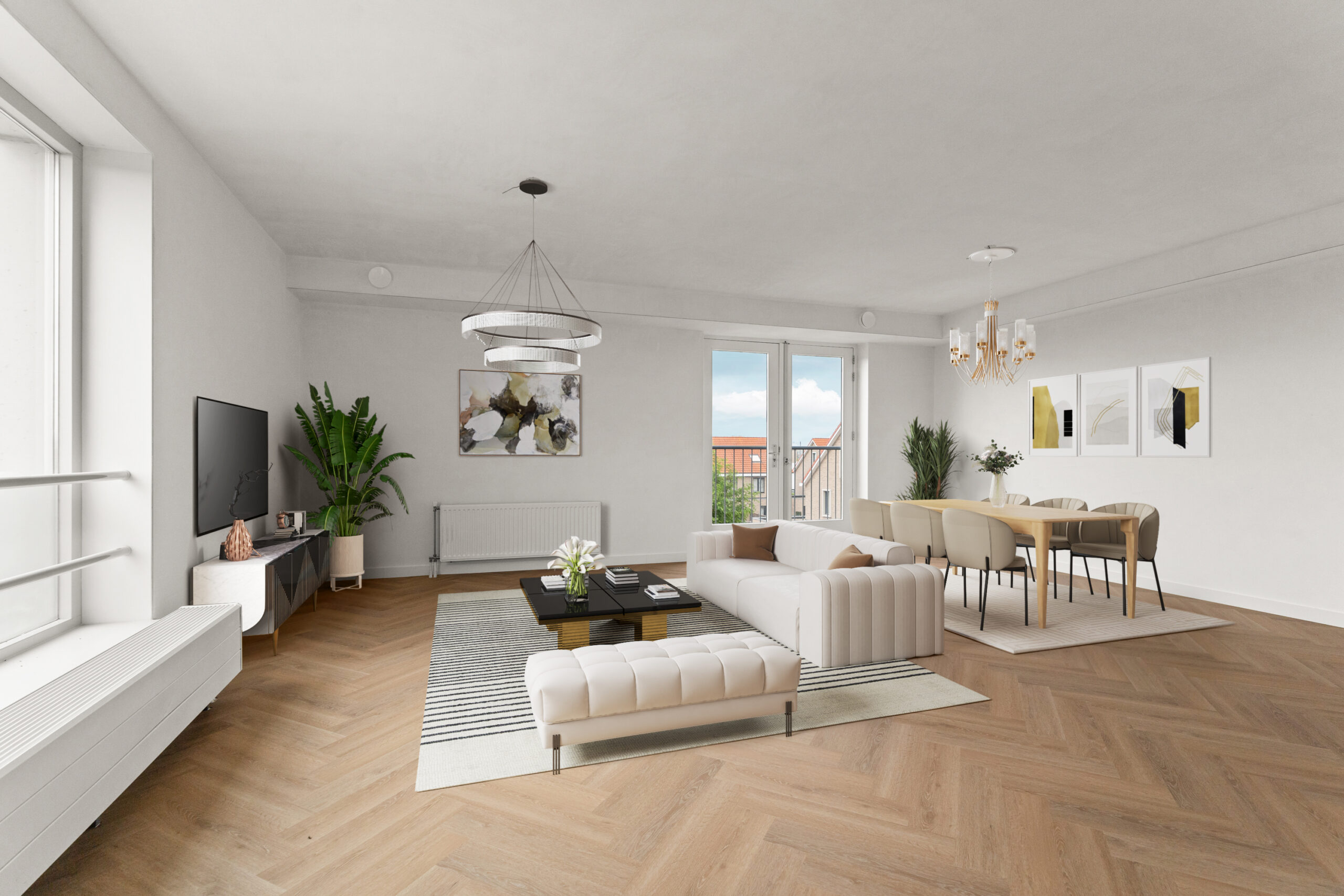 - Visgraatvloer in het hele appartement (2024).