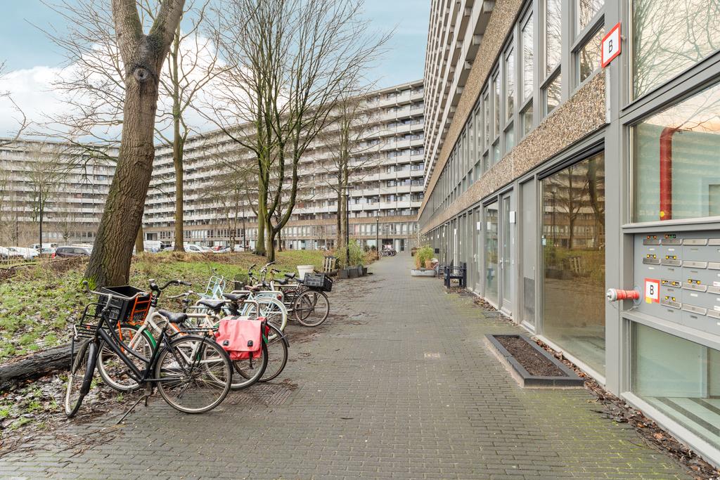 De woning beschikt over een eigen berging van circa. 4 m2 op dezelfde verdieping. Onderin het complex is er een (afgesloten) algemene fietsenstalling. Parkeren kan gratis op de openbare parkeerplaats.