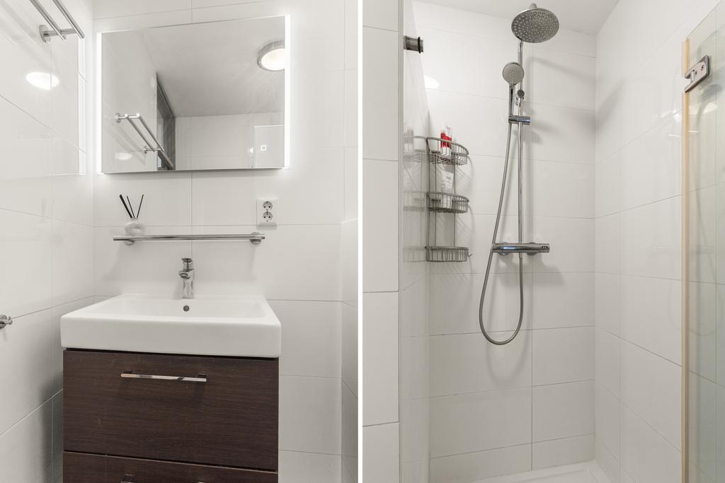 The modern bathroom (approx. 3m²) of this apartment is equipped with white tiling up to the ceiling and a beautiful dark gray floor tile, creating a natural and calming atmosphere. The sink with furniture also fits perfectly into the overall design. The furniture is modern and sleek, offering ample storage for all your toiletries. The toilet is also located in the bathroom.