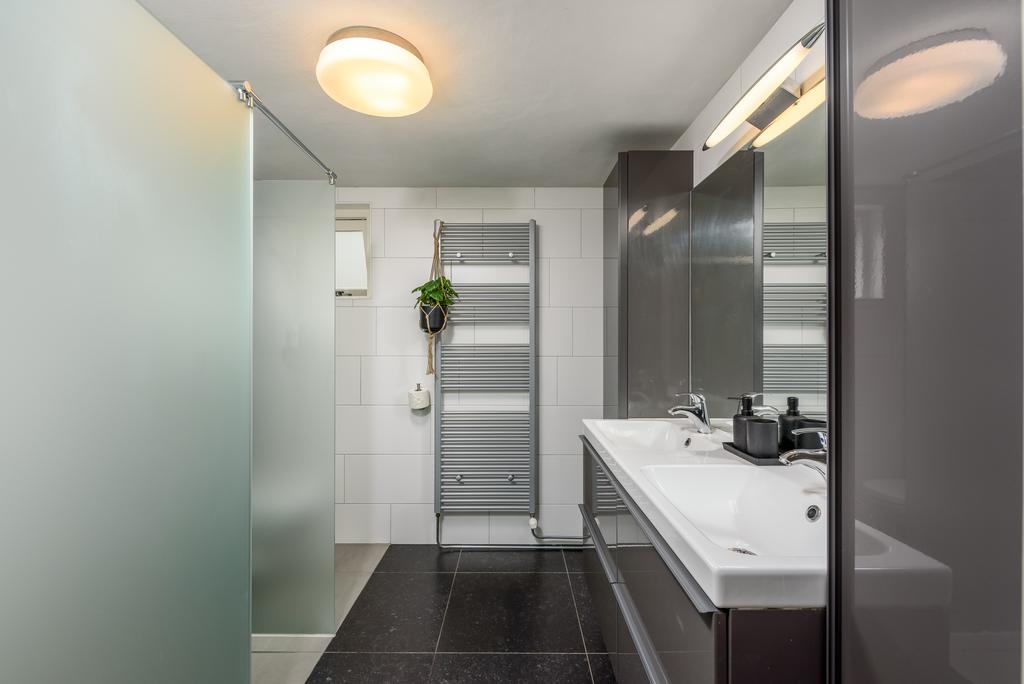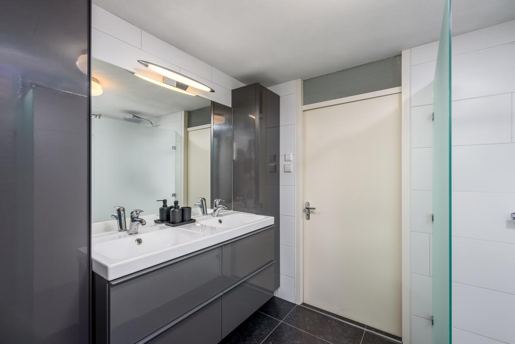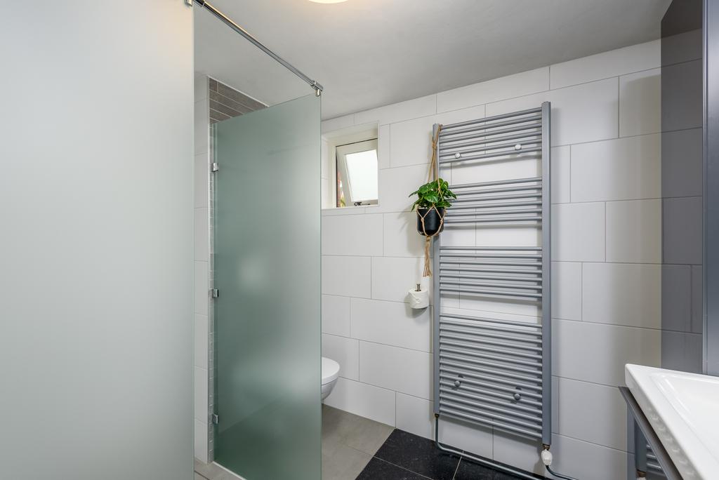De recent gerenoveerde badkamer is uitgerust met een inloopdouche, een handdoekenradiator en een raampje voor fris daglicht. De dubbele wastafel met meubel past perfect in het geheel. Het is modern en strak vormgegeven en biedt voldoende opbergruimte voor al je toiletartikelen, zodat je in alle comfort kunt genieten van je dagelijkse routines.