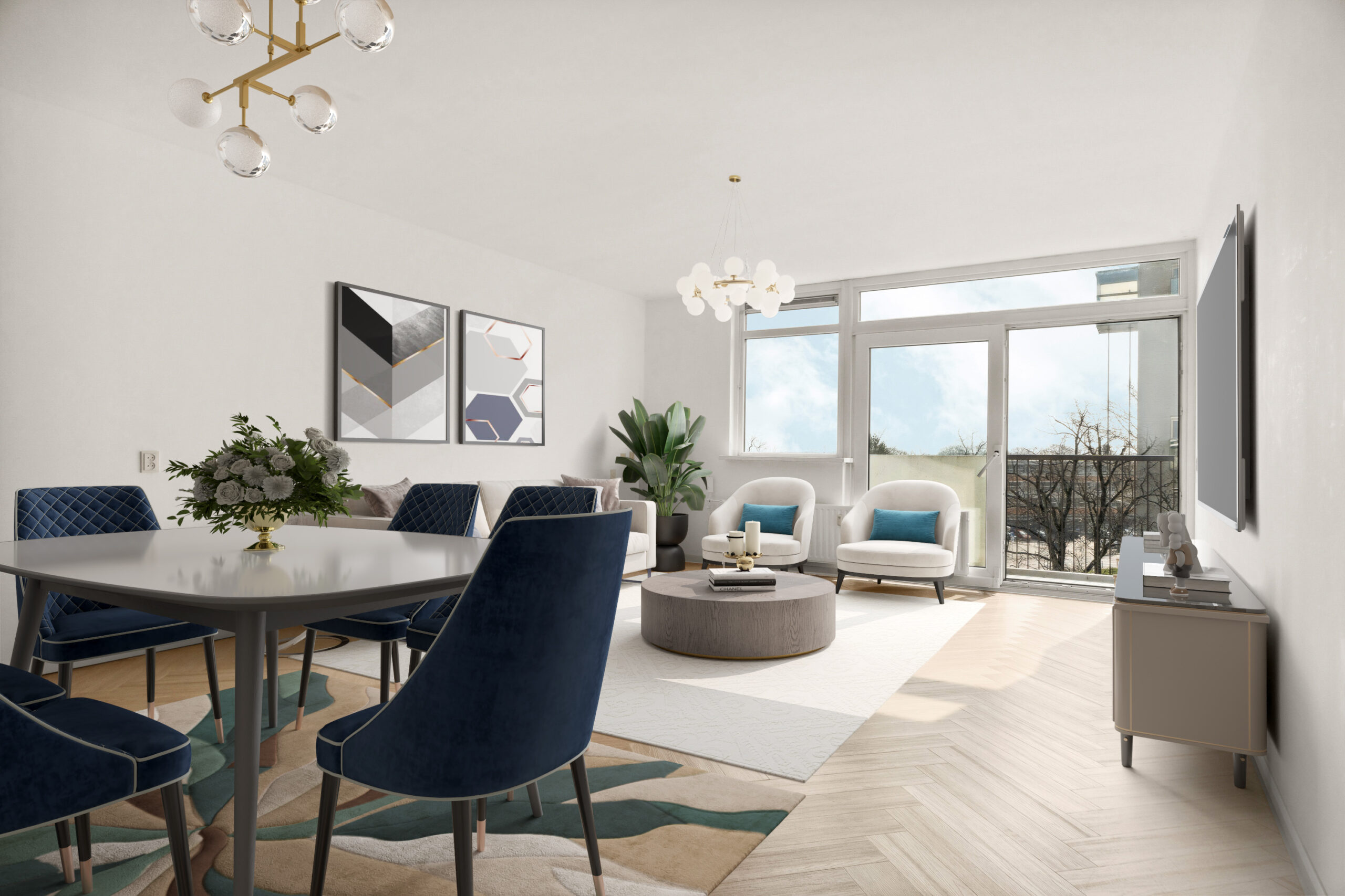 Through the plastic sliding doors you enter the sunny balcony. The balcony has a fantastic view and is located on the southeast.