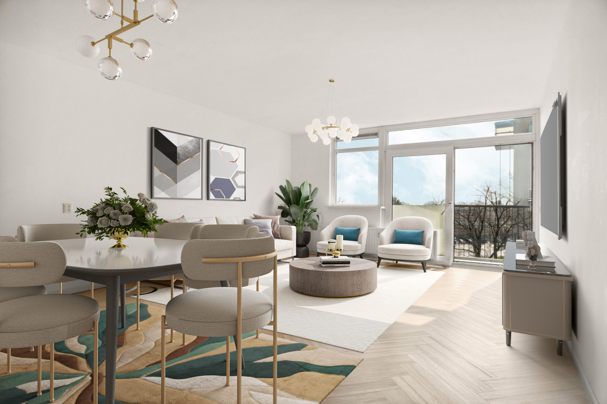 Het hele appartement is voorzien van een moderne visgraatvloer.
