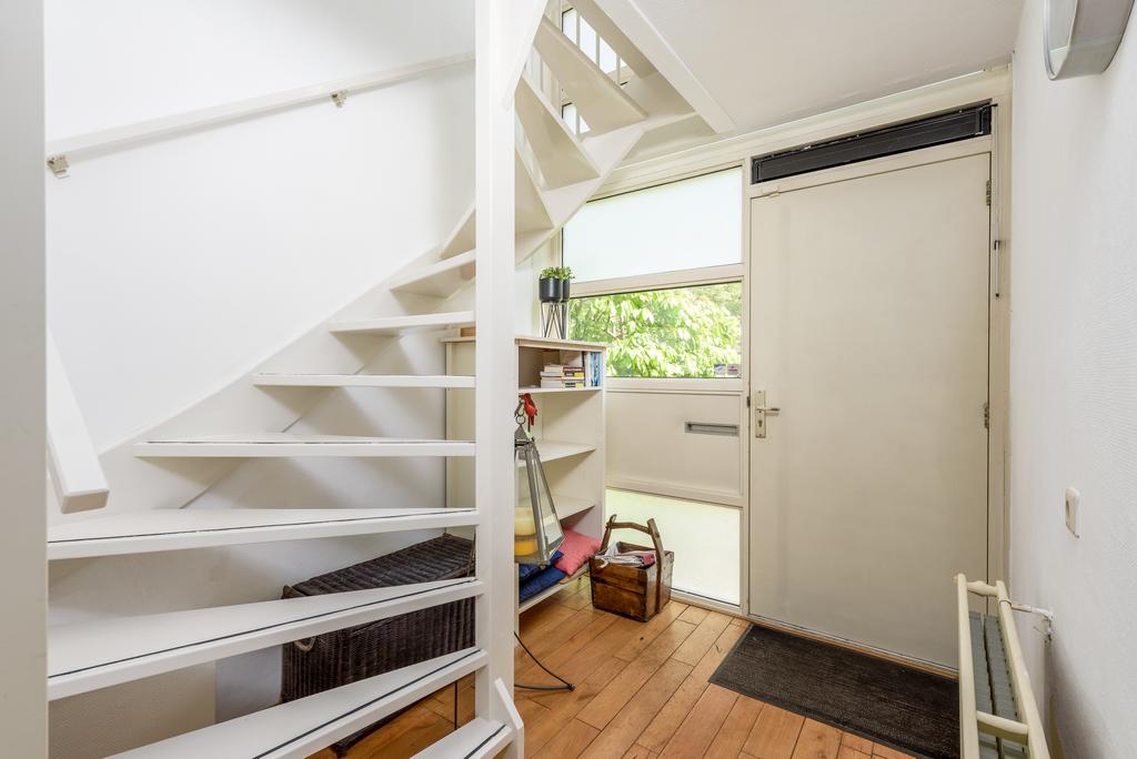 Via de voortuin met beschutte haag betreedt je de woning. Door de hoge raampartijen en de vide is het een prachtig en ruimtelijk entree. Verder bevindt zich hier een garderobehoek, royale bergkast met de meters voor de nutsvoorzieningen, moderne toiletruimte (vernieuwd in 2020) en toegang tot de tuingerichte woonkamer.