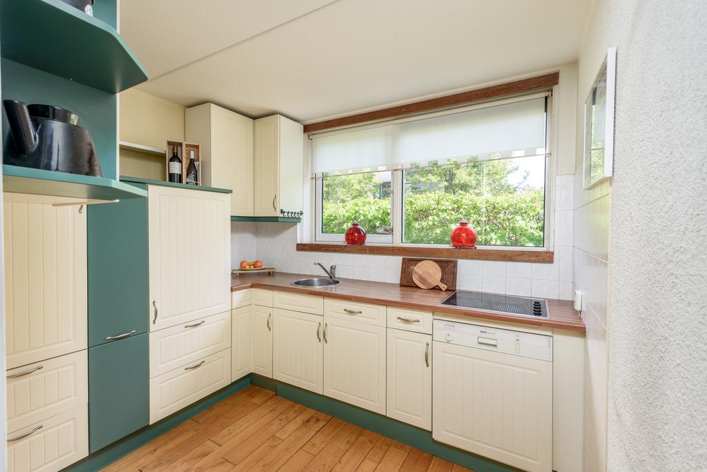 De woonkamer geeft toegang tot de halfopen keuken. De keuken is voorzien van diverse inbouwapparatuur te weten: vaatwasser, koelkast en keramische kookplaat.